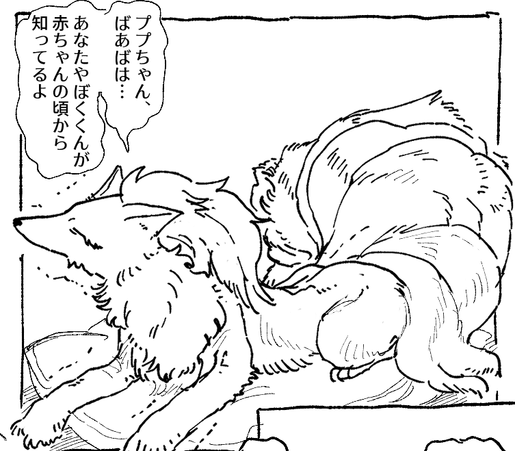 body_fur closed_eyes dancho_no_mori gen_1_pokemon kitsune kyuubi multiple_tails ninetales nintendo no_humans on_cushion pokemon pokemon_(creature) pokemon_focus solo speech_bubble tail translation_request