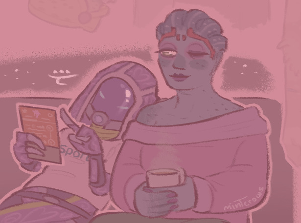 2girls alien alternate_costume asari_(mass_effect) leaning_on_person mass_effect_(series) multiple_girls one_eye_closed quarian samara_(mass_effect) tali'zorah