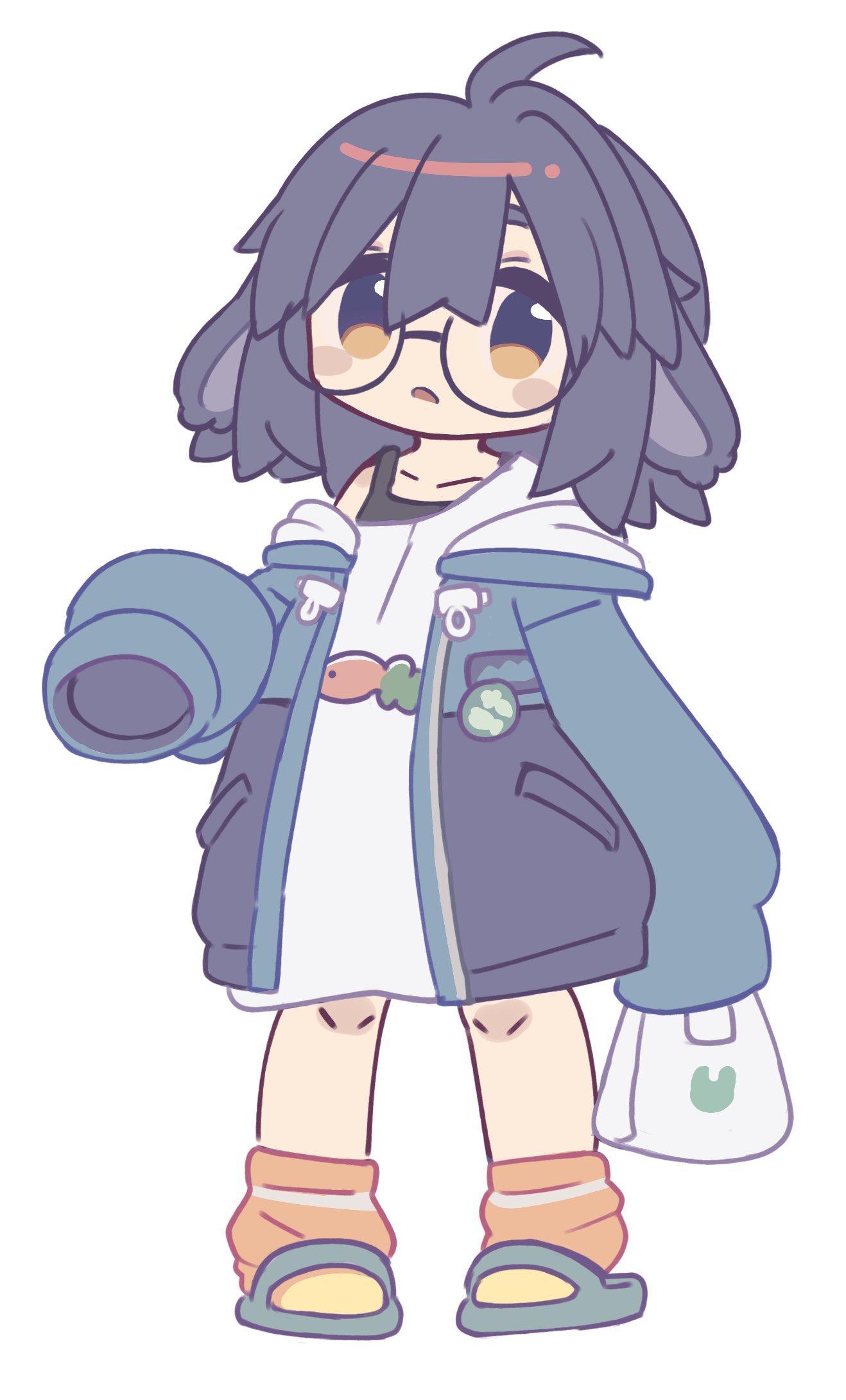 1girl ahoge animal_ears animal_slippers bag bare_shoulders black-framed_eyewear black_bra black_camisole black_hair black_tank_top blue_hair blue_hoodie blue_jacket blue_shoes blush blush_stickers bra brown_eyes camisole carrot chibi collarbone crocs d: drawstring dress food full_body glasses green_shoes grocery_bag hair_between_eyes hand_up highres holding holding_bag hood hood_down hooded_jacket hoodie jacket jewelry leg_warmers long_hair long_shirt long_sleeves looking_at_viewer loose_socks medium_hair necklace no_pants off_shoulder open_clothes open_hoodie open_jacket open_mouth orange_eyes orange_socks orange_thighhighs oversized_clothes oversized_shirt paper_bag parted_lips pigeon-toed plastic_bag pocket puffy_long_sleeves puffy_sleeves rabbit_ears rabbit_girl round_eyewear sandals semi-rimless_eyewear shirt shoes shopping_bag short_eyebrows short_hair simple_background single_bare_shoulder sleeveless sleeves_past_fingers sleeves_past_wrists slippers socks solo standing strap_slip striped_clothes striped_socks tank_top thick_eyebrows thighhighs transparent_background trim5654 under-rim_eyewear underwear usasaki_(vrchat) vrchat wavy_mouth white_background white_bag white_dress white_shirt white_tank_top yellow_eyes