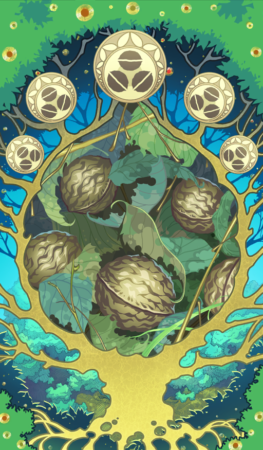 circle commentary fate/grand_order fate_(series) green_theme leaf nature no_humans nut_(food) official_art outline plant_roots seed still_life third-party_source tree yamaneko_(lasengle)