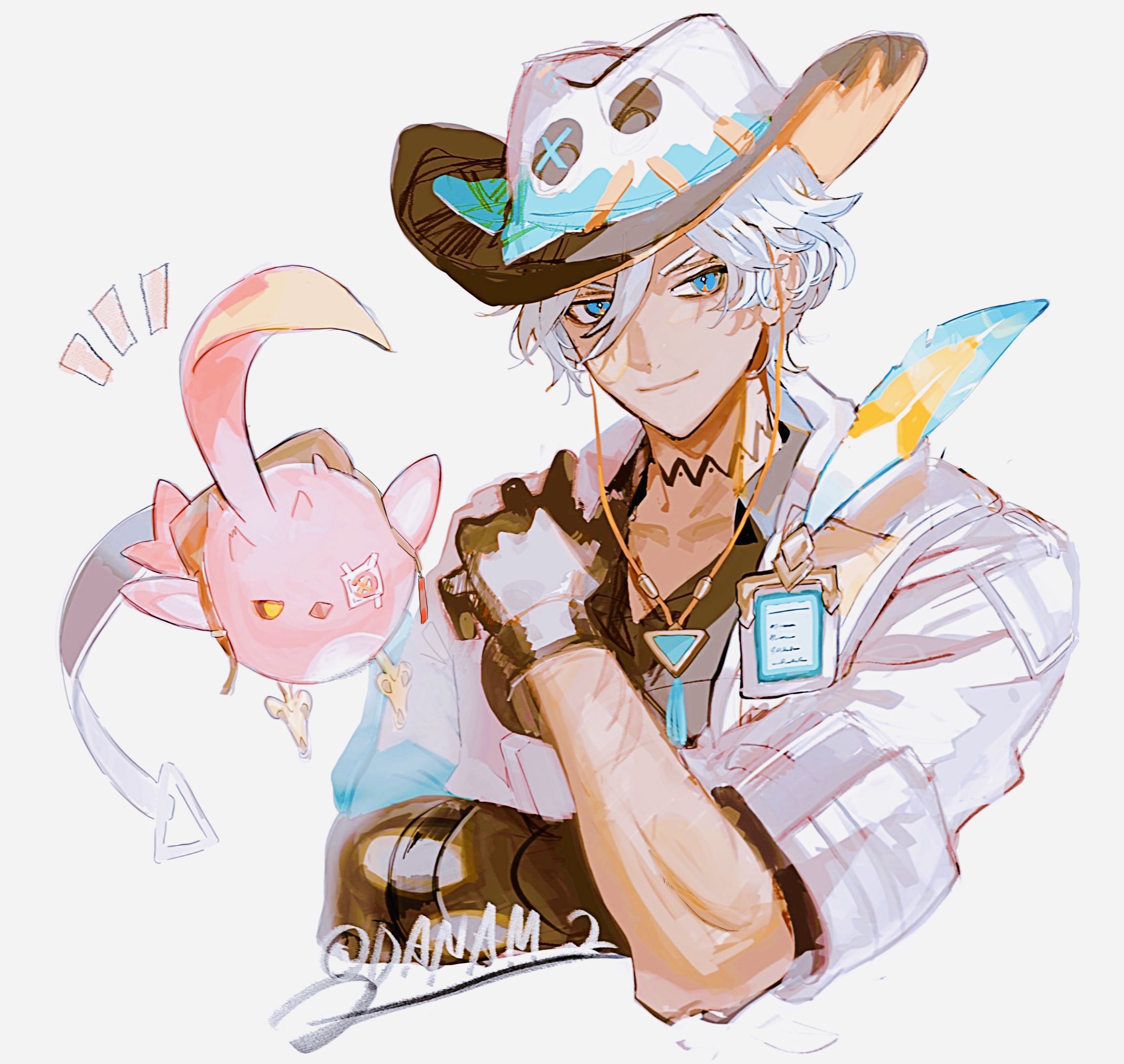 &{ID:11702109 CreatedAt:Tue Apr 01 20:15:06 -0500 2025 Score:0 Width:2295 Height:2172 MD5:f40b588448204b6b7b0c813bb5698bb0 Directory:f4/0b Image:f40b588448204b6b7b0c813bb5698bb0.jpg Rating:general Source:https://twitter.com/DANAM_2/status/1907167998282195001 Change:1757096641 Owner:danbooru CreatorID:6498 ParentID:0 Sample:1 PreviewHeight:331 PreviewWidth:350 Tags:1boy aqua_eyes artist_name black_shirt cacucu_(genshin_impact) closed_mouth collarbone collared_shirt commentary_request cowboy_hat danam_2 dark-skinned_male dark_skin feathers genshin_impact hair_between_eyes hat highres id_card ifa_(genshin_impact) jacket lapels male_focus notice_lines open_clothes open_jacket scar scar_across_eye scar_on_face shirt short_hair signature simple_background smile solo tassel twitter_username upper_body white_background white_hair white_hat white_jacket Title: HasNotes:false HasComments:false FileURL:https://img2.gelbooru.com/images/f4/0b/f40b588448204b6b7b0c813bb5698bb0.jpg PreviewURL:https://gelbooru.com/thumbnails/f4/0b/thumbnail_f40b588448204b6b7b0c813bb5698bb0.jpg SampleURL:https://img2.gelbooru.com/samples/f4/0b/sample_f40b588448204b6b7b0c813bb5698bb0.jpg SampleHeight:804 SampleWidth:850 Status:active PostLocked:0 HasChildren:false IsVideo:false DisplayDate:01.04.2025 20:15}