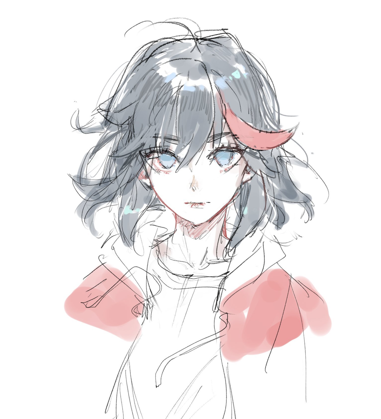 1girl black_hair blue_eyes highres hood hoodie jibek_lily kill_la_kill matoi_ryuuko multicolored_hair short_hair