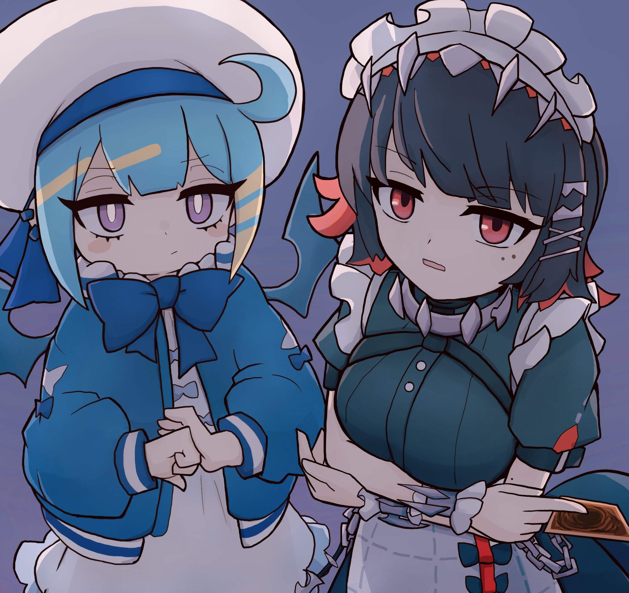 &{ID:11749859 CreatedAt:Thu Apr 10 11:31:46 -0500 2025 Score:3 Width:2108 Height:1990 MD5:b4f665a1d993ec896aa512d2b568e4c5 Directory:b4/f6 Image:b4f665a1d993ec896aa512d2b568e4c5.jpg Rating:general Source:https://www.pixiv.net/artworks/127292410 Change:1744302706 Owner:danbooru CreatorID:6498 ParentID:0 Sample:1 PreviewHeight:330 PreviewWidth:350 Tags:2girls ahoge apron arms_under_breasts black_hair blue_bow blue_hair blue_jacket bow breasts card chain clenched_hands closed_mouth crossover demon_girl demon_wings dress duel_monster ellen_joe fins fish_tail fist_in_hand frilled_apron frilled_hairband frills grey_background hairband hat highres holding holding_card jacket large_breasts lil-la_(yu-gi-oh!) live_twin_lil-la long_sleeves looking_at_viewer maid maid_apron maid_headdress multiple_girls namakura_g purple_eyes red_eyes shark_girl shark_tail short_sleeves simple_background tail white_dress white_hat wings yu-gi-oh! zenless_zone_zero Title: HasNotes:false HasComments:false FileURL:https://img2.gelbooru.com/images/b4/f6/b4f665a1d993ec896aa512d2b568e4c5.jpg PreviewURL:https://gelbooru.com/thumbnails/b4/f6/thumbnail_b4f665a1d993ec896aa512d2b568e4c5.jpg SampleURL:https://img2.gelbooru.com/samples/b4/f6/sample_b4f665a1d993ec896aa512d2b568e4c5.jpg SampleHeight:802 SampleWidth:850 Status:active PostLocked:0 HasChildren:false IsVideo:false DisplayDate:10.04.2025 11:31}