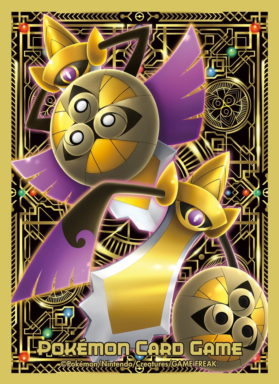 aegislash company_name copyright_name copyright_notice gen_6_pokemon highres holding holding_shield nintendo no_humans official_art one-eyed pokemon pokemon_(creature) pokemon_focus pokemon_tcg shield sword third-party_source weapon