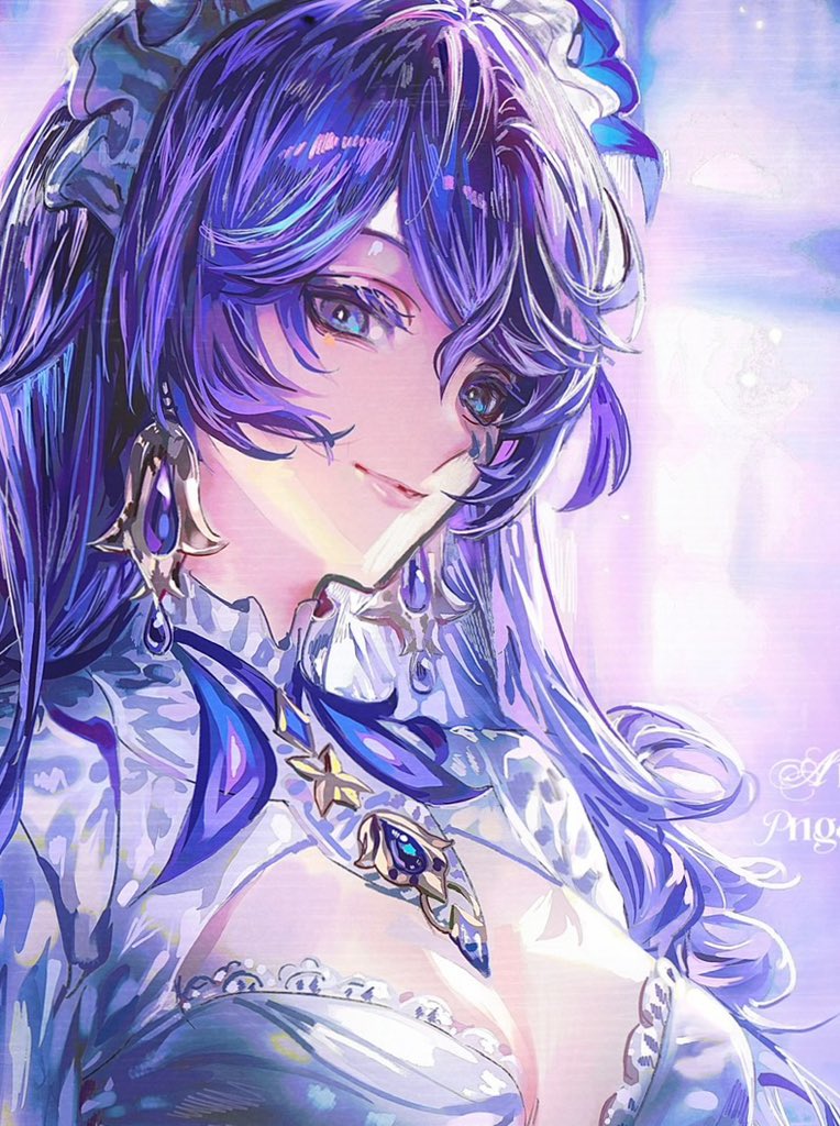 blue_eyes blue_hair breasts cantarella_(wuthering_waves) cleavage earrings jewelry large_breasts necklace smile stalinpng wuthering_waves