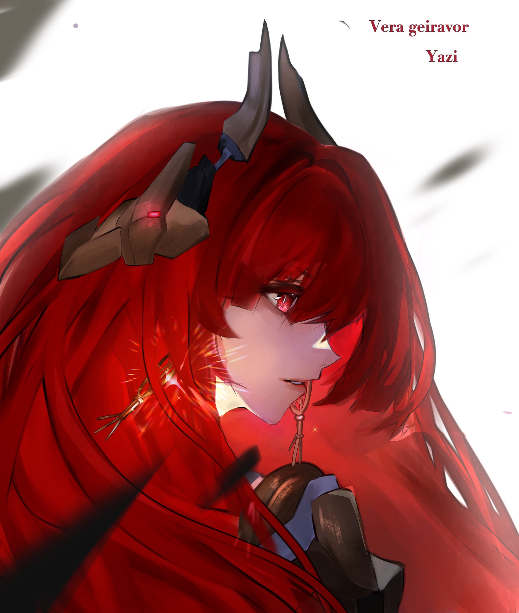 1girl artist_name character_name hair_between_eyes hair_ornament headgear highres long_hair parted_lips punishing:_gray_raven red_eyes red_hair solo stazrzii vera:_geiravor_(pgr) vera_(pgr)