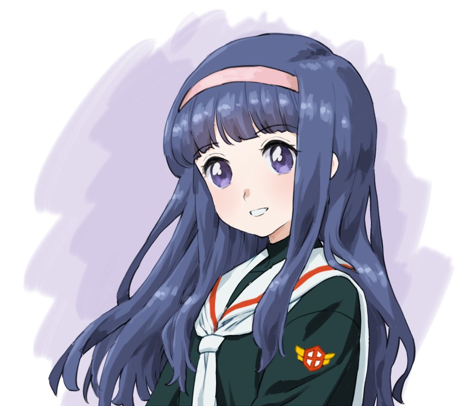 1girl cardcaptor_sakura commentary_request daidouji_tomoyo hairband long_hair looking_to_the_side purple_eyes purple_hair school_uniform serafuku smile solo tomoeda_elementary_school_uniform tomoeda_middle_school_uniform upper_body wakaho_riku