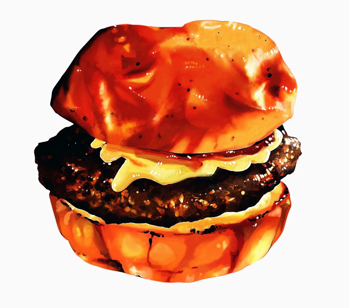 bread burger cheese commentary_request food food_focus frying-ammonite meat no_humans original simple_background white_background