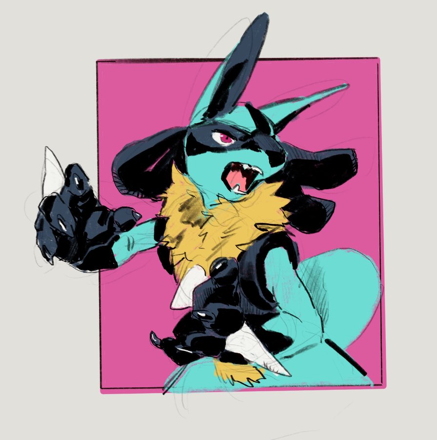 claws commentary_request cropped_legs gen_4_pokemon kinoe_ariver looking_ahead lucario neck_ruff nintendo open_mouth pokemon pokemon_(creature) red_eyes sketch spikes standing teeth tongue