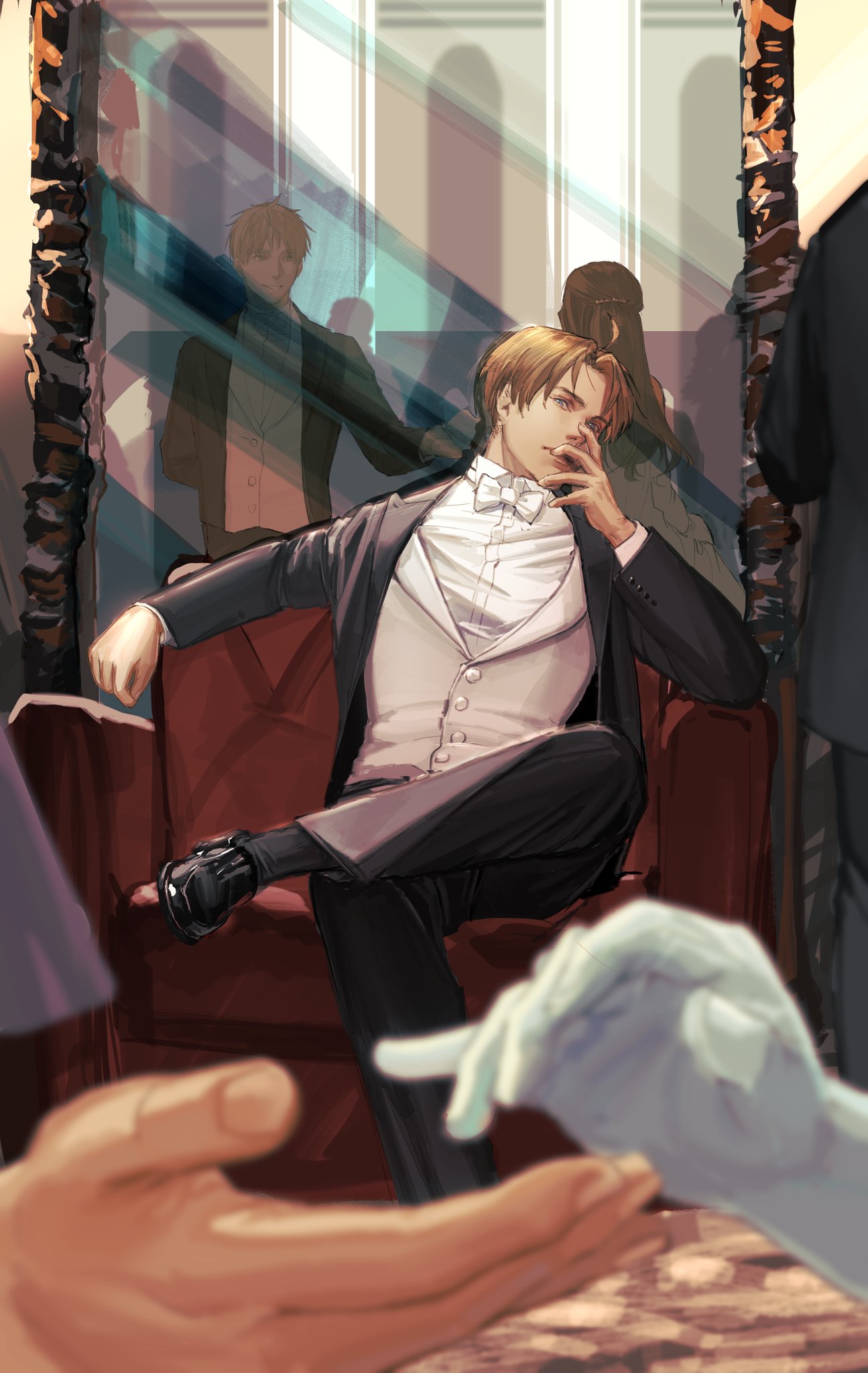 &{ID:11810543 CreatedAt:Mon Apr 21 14:45:35 -0500 2025 Score:0 Width:1295 Height:2048 MD5:9fcaffb05c13525f7176aedbd8df719a Directory:9f/ca Image:9fcaffb05c13525f7176aedbd8df719a.jpg Rating:general Source:https://twitter.com/zhongerweiyuan/status/1436540715450789893 Change:1751498217 Owner:danbooru CreatorID:6498 ParentID:0 Sample:1 PreviewHeight:350 PreviewWidth:221 Tags:1girl 2boys ahoge america_(hetalia) arm_behind_back axis_powers_hetalia back black_jacket black_pants black_shoes black_socks blonde_hair blue_eyes bow bowtie brown_hair buttons chair closed_mouth collared_shirt crossed_legs dress elbow_gloves fingernails formal_clothes gloves green_eyes hallway hand_on_own_face hand_up highres indoors jacket jealous lapels lips long_hair long_sleeves looking_at_another mirror multiple_boys on_chair open_clothes open_jacket pants reflection shirt shoes short_hair sitting smile socks standing suit suit_jacket teeth united_kingdom_(hetalia) vest white_bow white_bowtie white_dress white_gloves white_shirt white_vest zhongerweiyuan Title: HasNotes:false HasComments:false FileURL:https://img2.gelbooru.com/images/9f/ca/9fcaffb05c13525f7176aedbd8df719a.jpg PreviewURL:https://gelbooru.com/thumbnails/9f/ca/thumbnail_9fcaffb05c13525f7176aedbd8df719a.jpg SampleURL:https://img2.gelbooru.com/samples/9f/ca/sample_9fcaffb05c13525f7176aedbd8df719a.jpg SampleHeight:1344 SampleWidth:850 Status:active PostLocked:0 HasChildren:false IsVideo:false DisplayDate:21.04.2025 14:45}