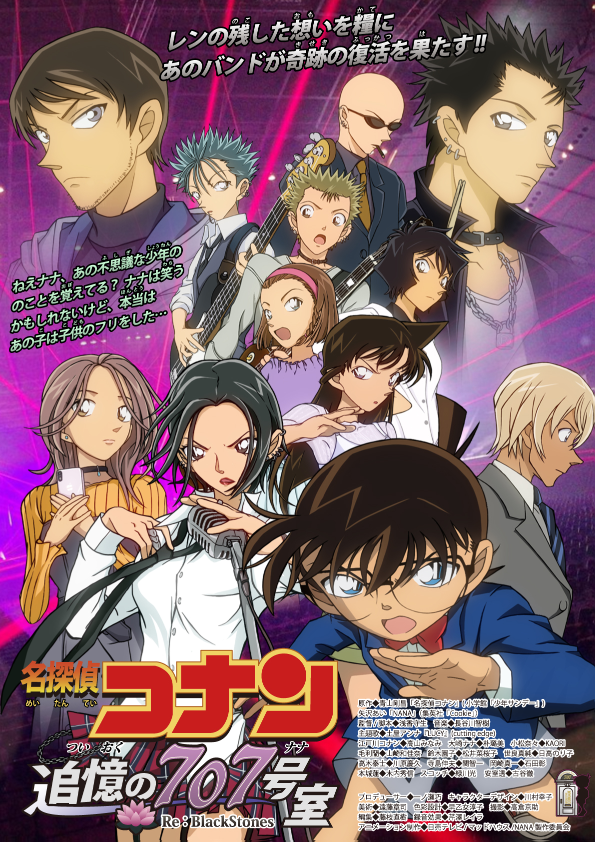 5girls 6+boys amuro_tooru bald bass_guitar beard_stubble belt belt_buckle belt_collar black-framed_eyewear black_belt black_choker black_garter_straps black_hair black_jacket black_necktie black_shirt black_thighhighs blonde_hair blue_eyes blue_hair blue_jacket blue_necktie bow bowtie bracelet brown_eyes brown_hair buckle buttons chain chain_necklace character_name choker cigarette clenched_hand closed_mouth collar collared_shirt concert copyright_logo copyright_name crossover diagonal-striped_clothes diagonal-striped_necktie double-breasted dress drumsticks ear_piercing edogawa_conan face_piercing facial_hair floating_hair garter_straps glasses grey_belt grey_dress grey_eyes grey_hoodie grey_jacket grey_shirt grey_shorts grey_vest guitar hand_up hands_on_own_chest highres hiko_(jihen_m) holding holding_instrument holding_microphone_stand holding_saxophone honjou_ren hood hood_down hoodie instrument jacket jewelry komatsu_nana lip_piercing logo long_hair long_sleeves looking_ahead looking_at_viewer looking_down looking_to_the_side medium_hair meitantei_conan microphone_stand miniskirt mouri_ran multiple_boys multiple_girls music nana_(series) necklace necktie official_style okazaki_shin'ichi open_clothes open_hoodie open_mouth orange_shirt osaki_nana parody parted_lips piercing plaid_clothes plaid_skirt playing_bass_guitar playing_guitar playing_instrument pleated_skirt purple_shirt red_bow red_bowtie red_skirt ring running saxophone scotch_(meitantei_conan) sera_masumi shirt short_hair short_sleeves shorts shure_55sh skirt smoking spiked_hair stage_lights striped_clothes stubble style_parody sunglasses suzuki_sonoko takagi_yasushi terashima_nobu thighhighs v-shaped_eyebrows vest white_shirt yellow_necktie