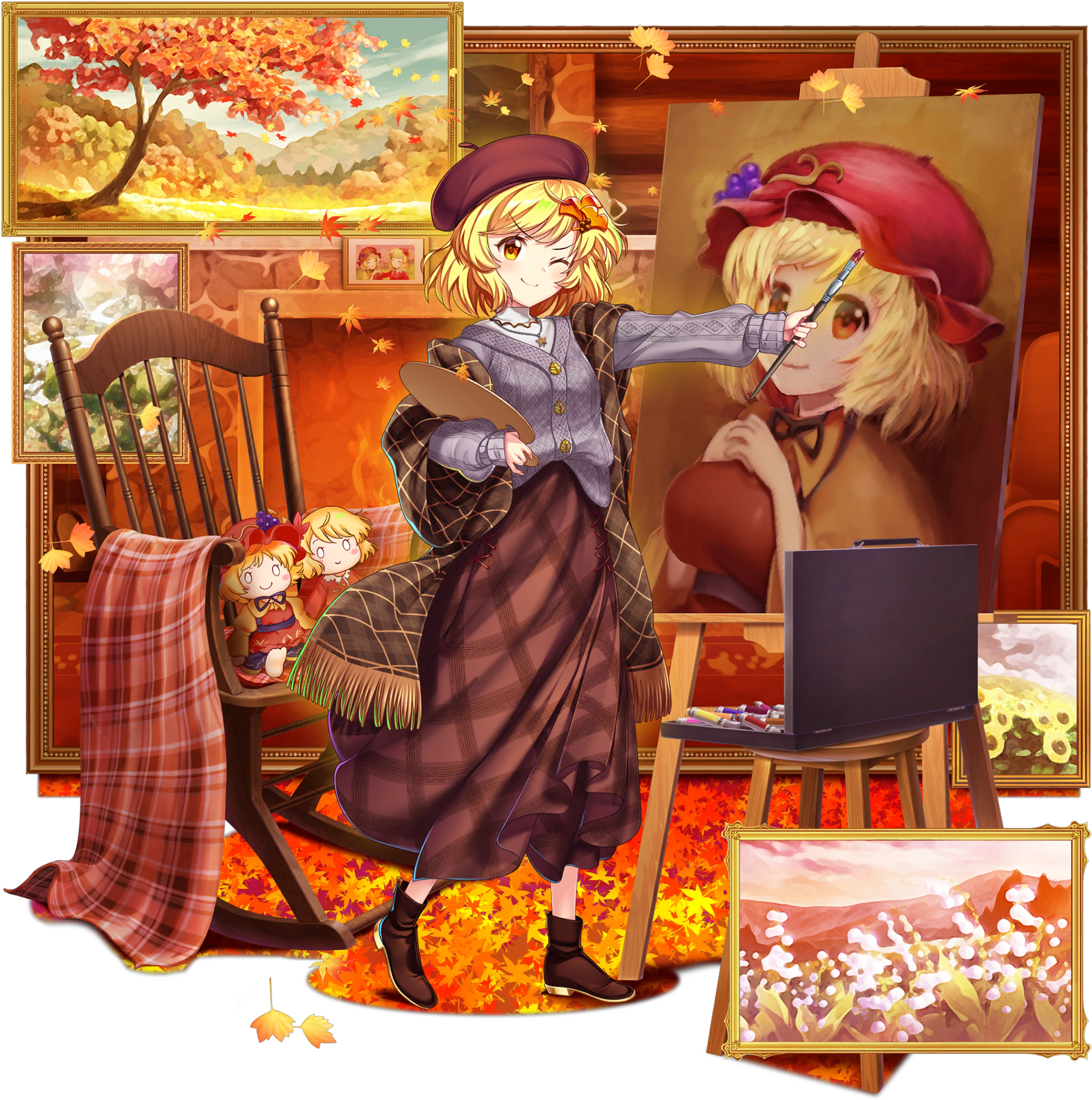 &{ID:11818539 CreatedAt:Wed Apr 23 01:16:10 -0500 2025 Score:1 Width:1922 Height:1936 MD5:4aeac868885f160e5f2932fc5d58dc81 Directory:4a/ea Image:4aeac868885f160e5f2932fc5d58dc81.png Rating:general Source:https://lostword.sukusuku.top/post/345 Change:1749627216 Owner:danbooru CreatorID:6498 ParentID:0 Sample:1 PreviewHeight:350 PreviewWidth:347 Tags:1girl aki_minoriko aki_shizuha aki_shizuha_(melancholy_autumn-leaf_artist_in_winter) alternate_costume autumn_leaves beret blonde_hair boots brown_boots brown_hat brown_scarf brown_skirt chair character_doll closed_mouth doll easel falling_leaves full_body game_cg grey_sweater hair_ornament hat highres holding holding_paintbrush indoors jewelry leaf leaf_hair_ornament long_skirt long_sleeves looking_at_viewer medium_hair necklace official_art one_eye_closed orange_eyes paint_tube paintbrush painting_(object) pendant picture_frame plaid_clothes plaid_skirt rocking_chair rotte_(1109) scarf skirt smile solo standing sweater third-party_source touhou touhou_lostword transparent_background Title: HasNotes:false HasComments:false FileURL:https://img2.gelbooru.com/images/4a/ea/4aeac868885f160e5f2932fc5d58dc81.png PreviewURL:https://gelbooru.com/thumbnails/4a/ea/thumbnail_4aeac868885f160e5f2932fc5d58dc81.jpg SampleURL:https://img2.gelbooru.com/samples/4a/ea/sample_4aeac868885f160e5f2932fc5d58dc81.jpg SampleHeight:856 SampleWidth:850 Status:active PostLocked:0 HasChildren:false IsVideo:false DisplayDate:23.04.2025 01:16}