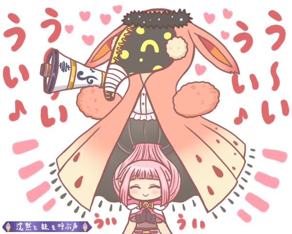 1girl ^_^ bad_id bad_twitter_id black_gloves blunt_bangs blush cloak closed_eyes doppel_(madoka_magica) giovanna_(madoka_magica) gloves heart hood hooded_cloak long_hair magia_record:_mahou_shoujo_madoka_magica_gaiden magical_girl mahou_shoujo_madoka_magica pink_hair reverse_(bluefencer) smile tamaki_iroha white_background