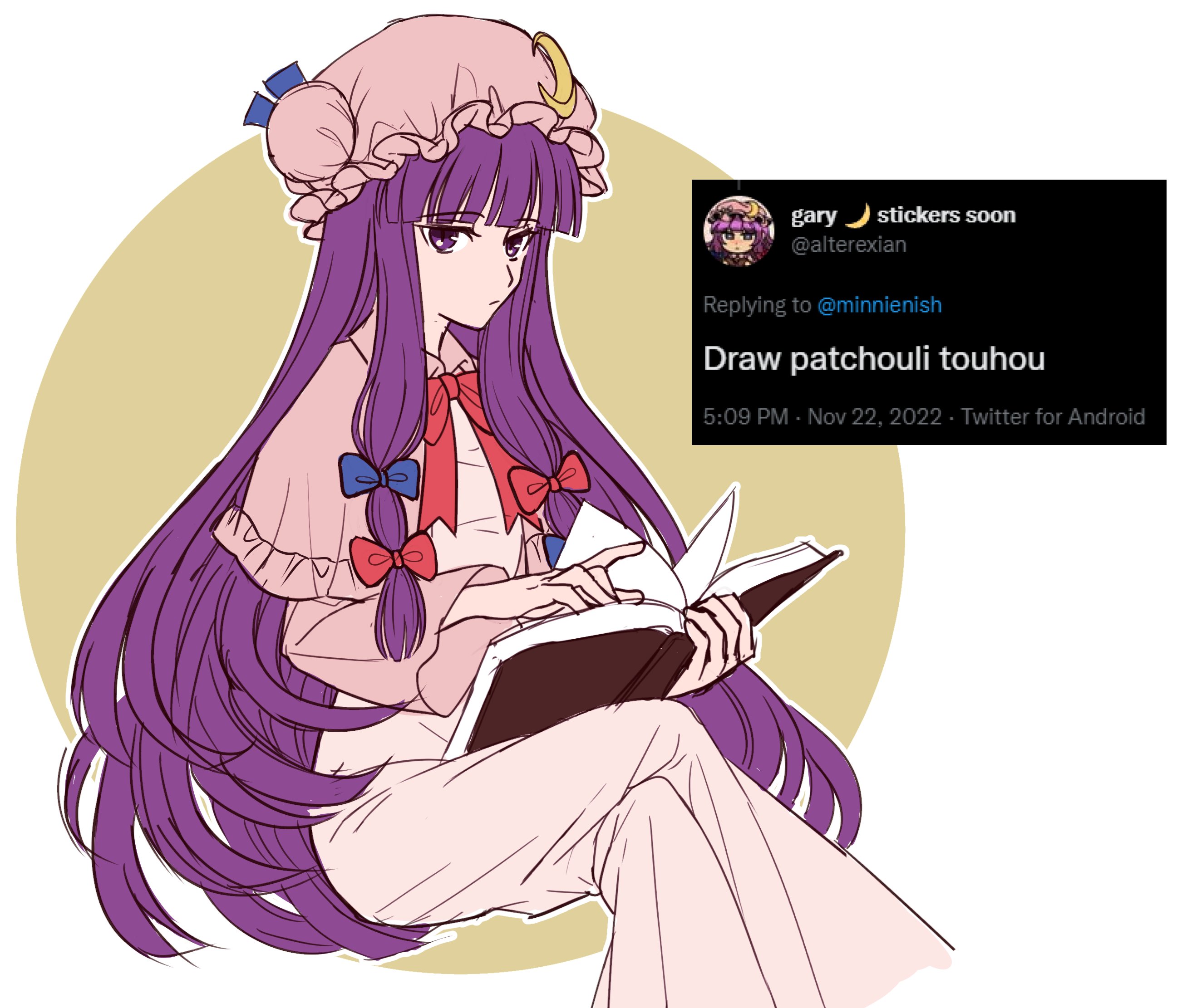 &{ID:11906155 CreatedAt:Fri May 09 12:31:14 -0500 2025 Score:0 Width:2593 Height:2222 MD5:ea41ff3c5e2ff961f4169f90bbb2ff1b Directory:ea/41 Image:ea41ff3c5e2ff961f4169f90bbb2ff1b.jpg Rating:general Source:https://twitter.com/minnienish/status/1597669831683477504 Change:1746811875 Owner:danbooru CreatorID:6498 ParentID:0 Sample:1 PreviewHeight:299 PreviewWidth:350 Tags:1girl blue_bow blunt_bangs book bow bowtie crescent crescent_hat_ornament dress english_text expressionless hair_bow hat hat_ornament highres holding holding_book long_hair looking_at_viewer minnienish mob_cap open_book patchouli_knowledge purple_eyes purple_hair red_bow red_bowtie solo touhou very_long_hair Title: HasNotes:false HasComments:false FileURL:https://img2.gelbooru.com/images/ea/41/ea41ff3c5e2ff961f4169f90bbb2ff1b.jpg PreviewURL:https://gelbooru.com/thumbnails/ea/41/thumbnail_ea41ff3c5e2ff961f4169f90bbb2ff1b.jpg SampleURL:https://img2.gelbooru.com/samples/ea/41/sample_ea41ff3c5e2ff961f4169f90bbb2ff1b.jpg SampleHeight:728 SampleWidth:850 Status:active PostLocked:0 HasChildren:false IsVideo:false DisplayDate:09.05.2025 12:31}