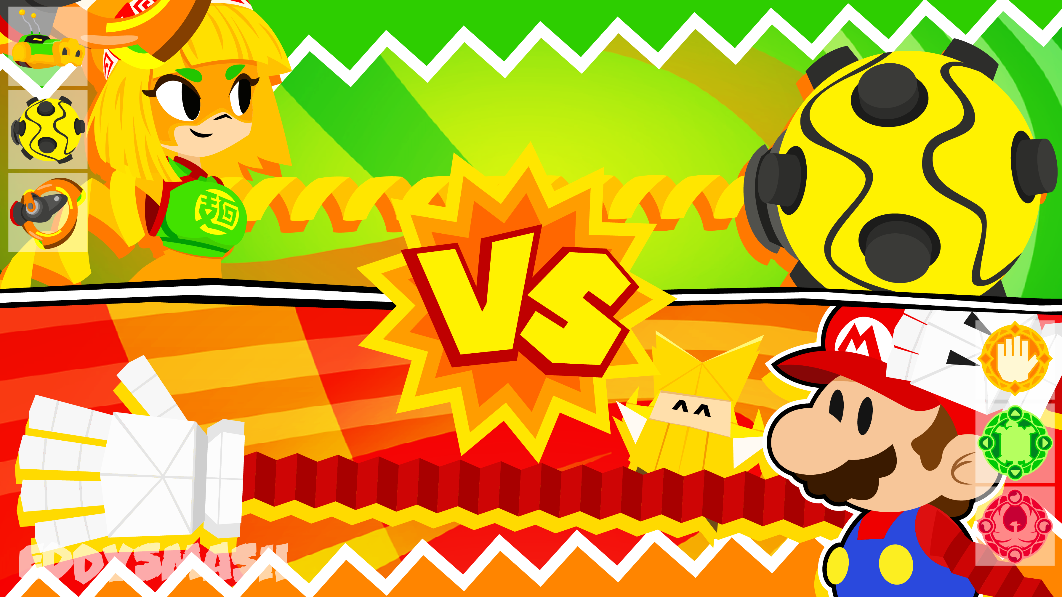 1boy 1girl absurdres arms_(game) artist_name beanie blonde_hair brown_hair eddysmash2407 extendable_limbs eye_mask facial_hair hat highres mario mario_(series) mask megawatt_(arms) min_min_(arms) mustache nintendo olivia_(paper_mario) overalls paper_mario paper_mario:_the_origami_king paper_mario_(character) red_hat short_hair smile