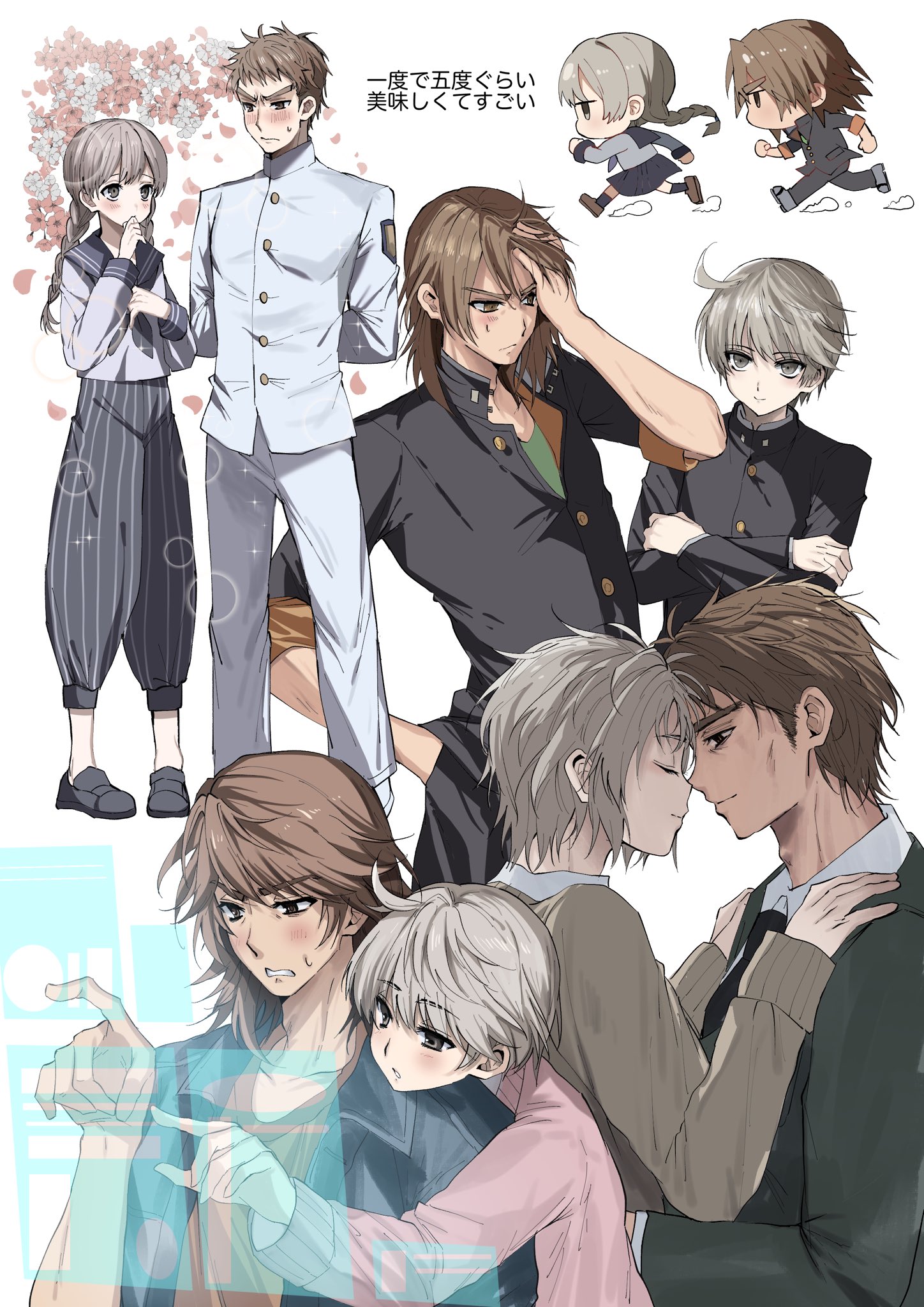 &{ID:11920201 CreatedAt:Sun May 11 16:31:08 -0500 2025 Score:1 Width:1448 Height:2048 MD5:db6ff048cd8526c7e95f8e16a2e51fee Directory:db/6f Image:db6ff048cd8526c7e95f8e16a2e51fee.jpg Rating:general Source:https://x.com/unkogakatasugi/status/1921491878739955892/photo/1 Change:1746999068 Owner:danbooru CreatorID:6498 ParentID:0 Sample:1 PreviewHeight:350 PreviewWidth:247 Tags:2boys ahoge arms_behind_back blue_pants blue_sailor_collar blush braid brown_eyes brown_hair cardigan collared_shirt gakuran grey_eyes grey_hair highres hijiyama_takatoshi jacket juusan_kihei_bouei_ken kasukasugom1 loafers long_hair long_sleeves looking_at_another male_focus medium_hair multiple_boys multiple_views noses_touching okino_tsukasa pants sailor_collar school_uniform shirt shoes short_hair simple_background sleeves_rolled_up smile twin_braids white_background white_gakuran white_shirt yaoi Title: HasNotes:false HasComments:false FileURL:https://img2.gelbooru.com/images/db/6f/db6ff048cd8526c7e95f8e16a2e51fee.jpg PreviewURL:https://gelbooru.com/thumbnails/db/6f/thumbnail_db6ff048cd8526c7e95f8e16a2e51fee.jpg SampleURL:https://img2.gelbooru.com/samples/db/6f/sample_db6ff048cd8526c7e95f8e16a2e51fee.jpg SampleHeight:1202 SampleWidth:850 Status:active PostLocked:0 HasChildren:false IsVideo:false DisplayDate:11.05.2025 16:31}