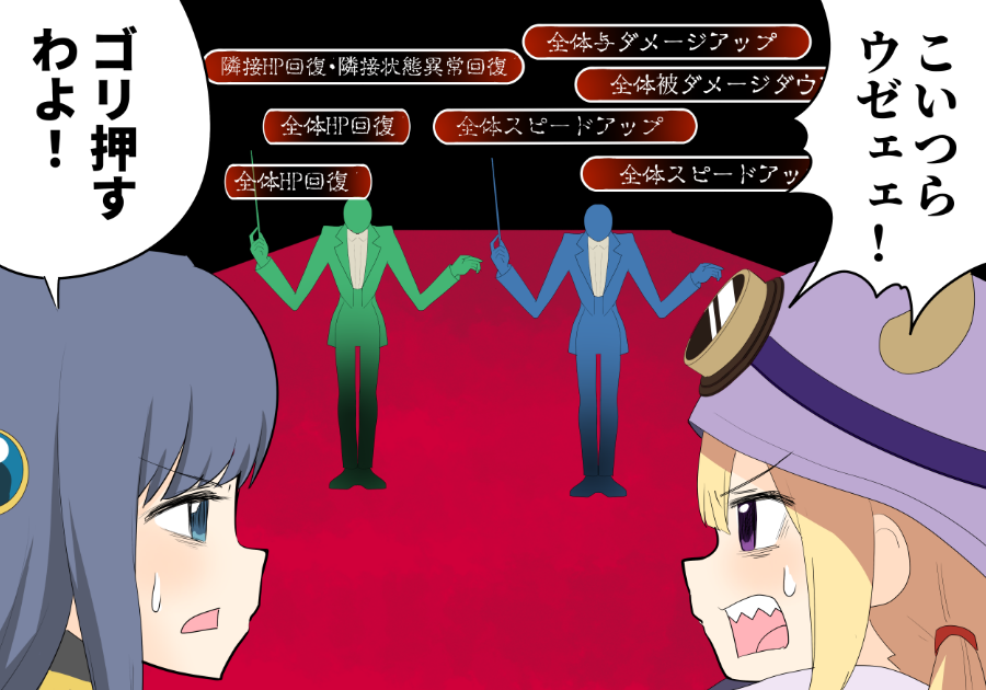 2boys 2girls annoyed armor bags_under_eyes bald battle black_shirt blazer blonde_hair blue_eyes blue_gem blue_hair blue_jacket blue_pants blue_shoes blue_skin blue_suit blunt_bangs brown-framed_eyewear brown_horns coattails collared_jacket collared_shirt colored_skin commentary_request conductor_baton cow_horns detached_hood suit_pants dress_shirt dress_shoes excellentfuyu faceless faceless_male fake_horns familiar_(madoka_magica) formal_clothes frown gameplay_mechanics gem gem_hair_ornament goggles goggles_on_headwear green_jacket green_pants green_shoes green_skin green_suit hair_between_eyes hair_tie high-waist_pants holding_baton holger_(madoka_magica) hood hood_up horned_hood horns jacket lapels light_blush long_hair long_sleeves looking_at_another low_twintails magia_record:_mahou_shoujo_madoka_magica_gaiden magical_girl mahou_shoujo_madoka_magica mahou_shoujo_madoka_magica_(anime) mahou_shoujo_madoka_magica_magia_exedra mitsuki_felicia multiple_boys multiple_girls nanami_yachiyo notched_lapels open_clothes open_jacket open_mouth pants pauldrons purple_eyes purple_hood purple_scarf round_eyewear scarf sharp_teeth shirt shoes shoulder_armor sidelocks speech_bubble suit sweatdrop tailcoat tareme teeth translation_request turtleneck turtleneck_shirt twintails upper_teeth_only v-shaped_eyebrows white_shirt witch's_labyrinth