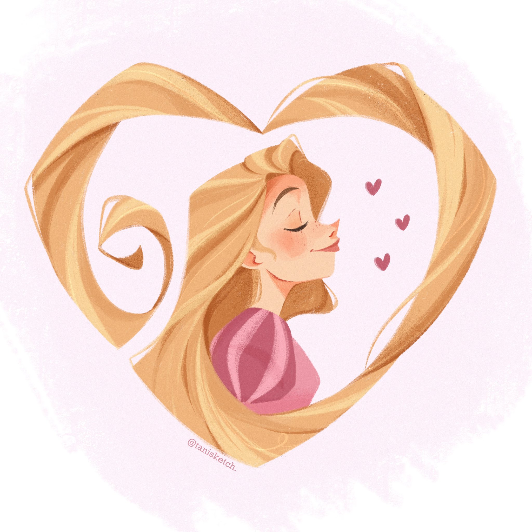 1girl artist_name blonde_hair closed_eyes from_side heart highres long_hair rapunzel_(disney) solo tangled tanisketch upper_body
