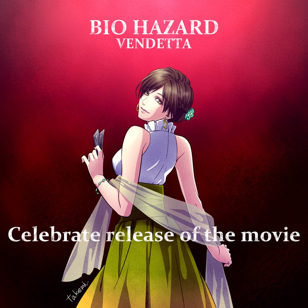 1girl braid brown_hair closed_mouth copyright_name dress earrings english_text jewelry lips looking_at_viewer rebecca_chambers resident_evil resident_evil:_vendetta short_hair simple_background solo takemi_mochi