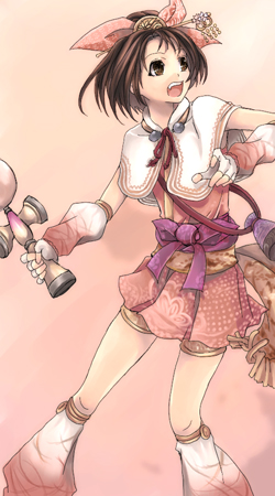 brown_eyes brown_hair hair_ornament japanese_clothes kendama oichi_(sengoku_musou) sengoku_musou skirt thigh_strap