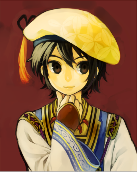 bad_id bad_pixiv_id beret black_hair brown_eyes hand_on_own_chin hat japanese_clothes jewelry kimono magatama magatama_necklace necklace sengoku_musou takenaka_hanbei_(sengoku_musou)