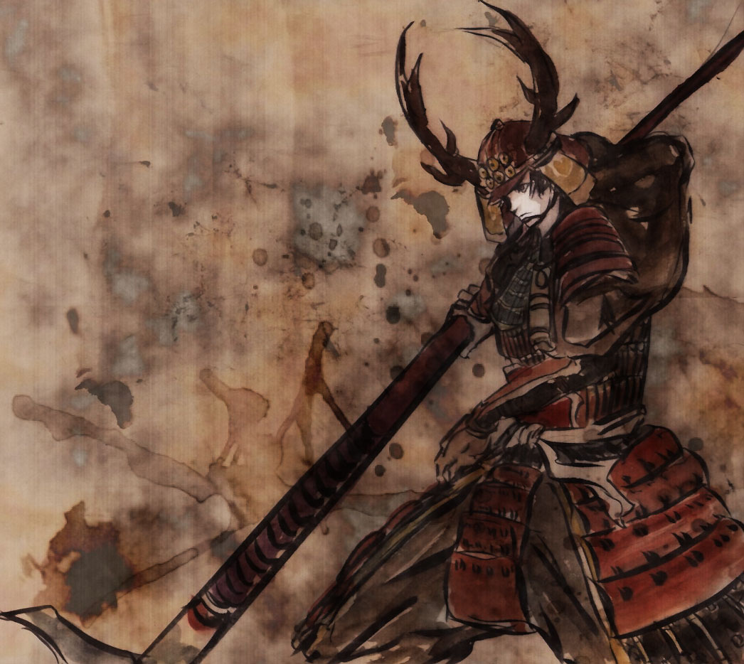 armor helmet male_focus polearm sanada_yukimura_(sengoku_musou) sengoku_musou sketch spear weapon