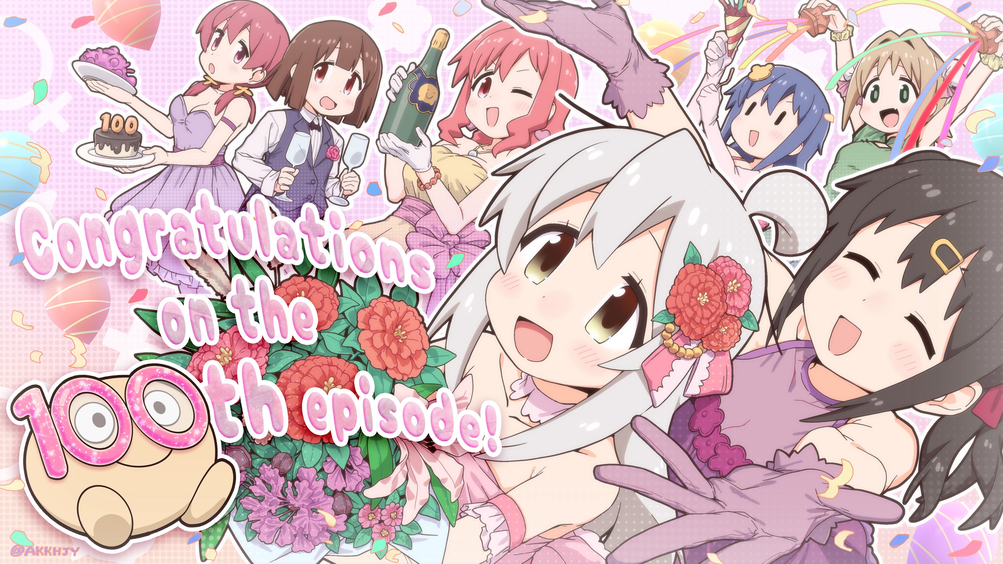 6+girls :d ;d absurdres ahoge alternate_costume artist_name bare_shoulders black_hair blue_hair bottle bouquet breasts brown_eyes brown_hair c: cake celebration champagne_bottle champagne_flute closed_eyes collarbone commentary_request congratulations cup dress drinking_glass elbow_gloves english_text flower food genderswap genderswap_(mtf) gloves green_eyes grey_hair hair_flower hair_intakes hair_ornament hairclip highres holding holding_bottle holding_bouquet holding_cup hozuki_kaede hozuki_momiji large_breasts long_hair looking_at_viewer low_twintails matado_(almukha) milestone_celebration multiple_girls murosaki_miyo oka_asahi one_eye_closed onii-chan_wa_oshimai! open_mouth outline outstretched_arms oyama_mahiro oyama_mihari party_popper pink_hair plate red_eyes red_hair scrunchie siblings sisters smile tenkawa_nayuta twintails twitter_username venus_symbol white_gloves white_outline wrist_scrunchie |_|