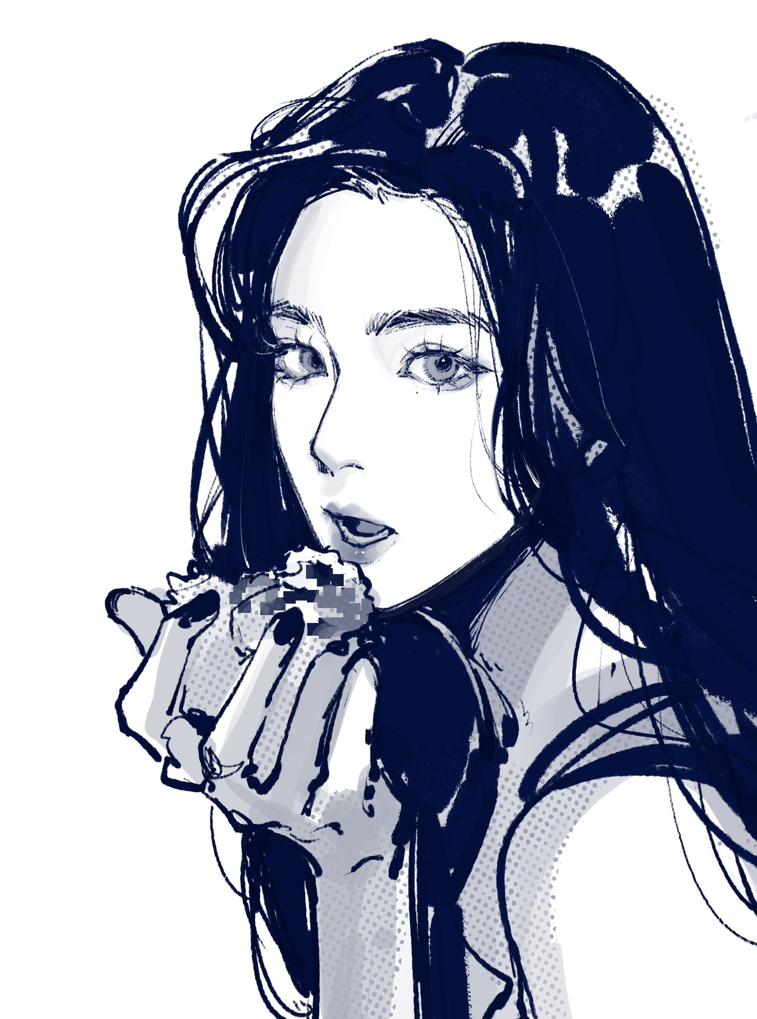 1girl eyelashes greyscale highres irene_(red_velvet) k-pop long_hair monochrome open_mouth profile real_life red_velvet_(group) simple_background solo upper_body yuanwei_shaoya