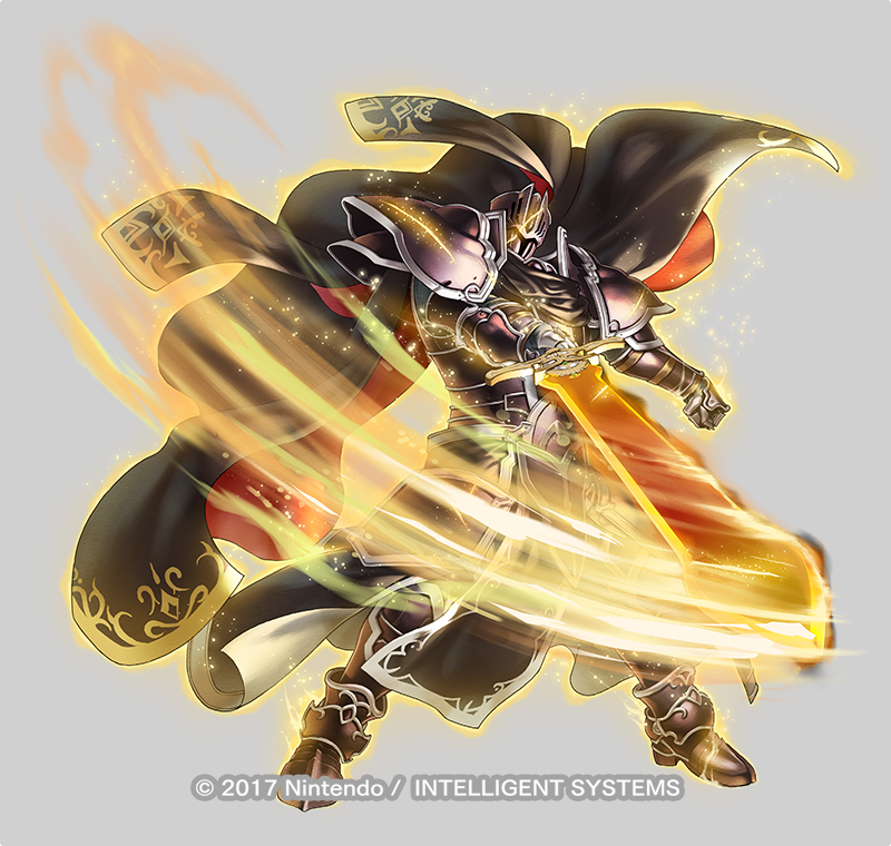 1boy armor aura black_knight_(fire_emblem) black_knight_(mortal_legend)_(fire_emblem) cape commentary_request company_name fire_emblem fire_emblem:_radiant_dawn fire_emblem_heroes full_armor full_body grey_background holding holding_sword holding_weapon kita_senri male_focus nintendo official_art simple_background solo sword two-sided_cape two-sided_fabric weapon