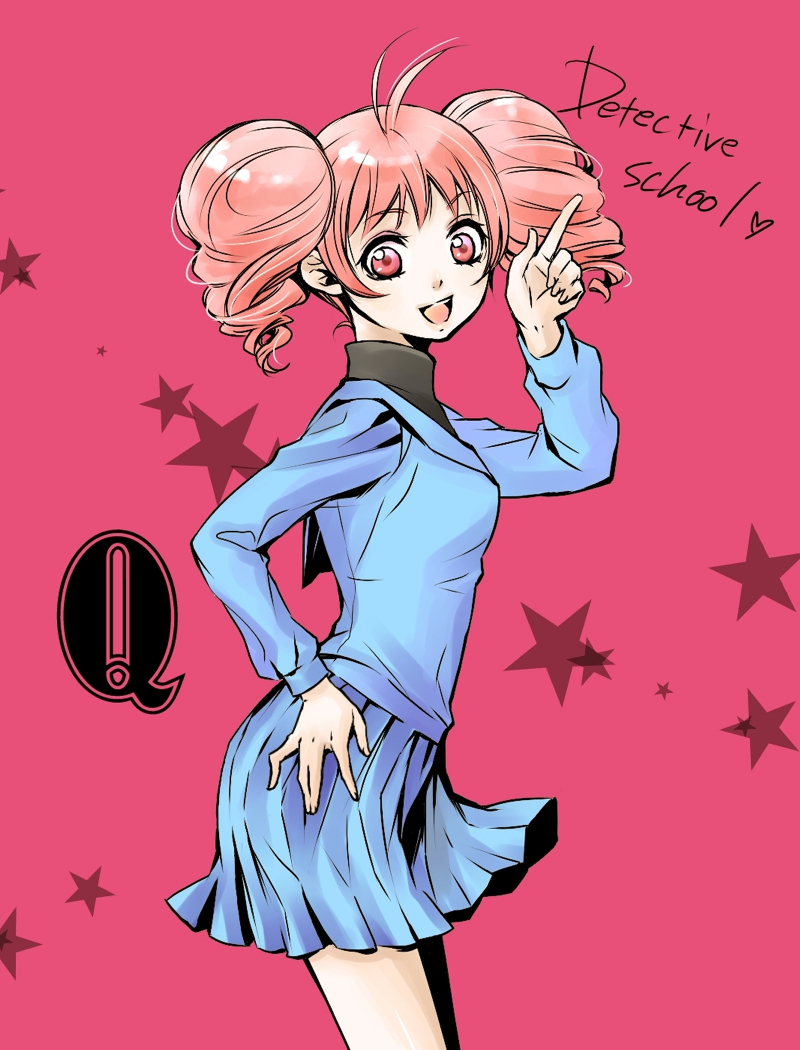 ! 1girl artist_request breasts legs long_hair minami_megumi open_mouth pink_eyes pink_hair school_uniform skirt tantei_gakuen_q thighhighs twintails zettai_ryouiki