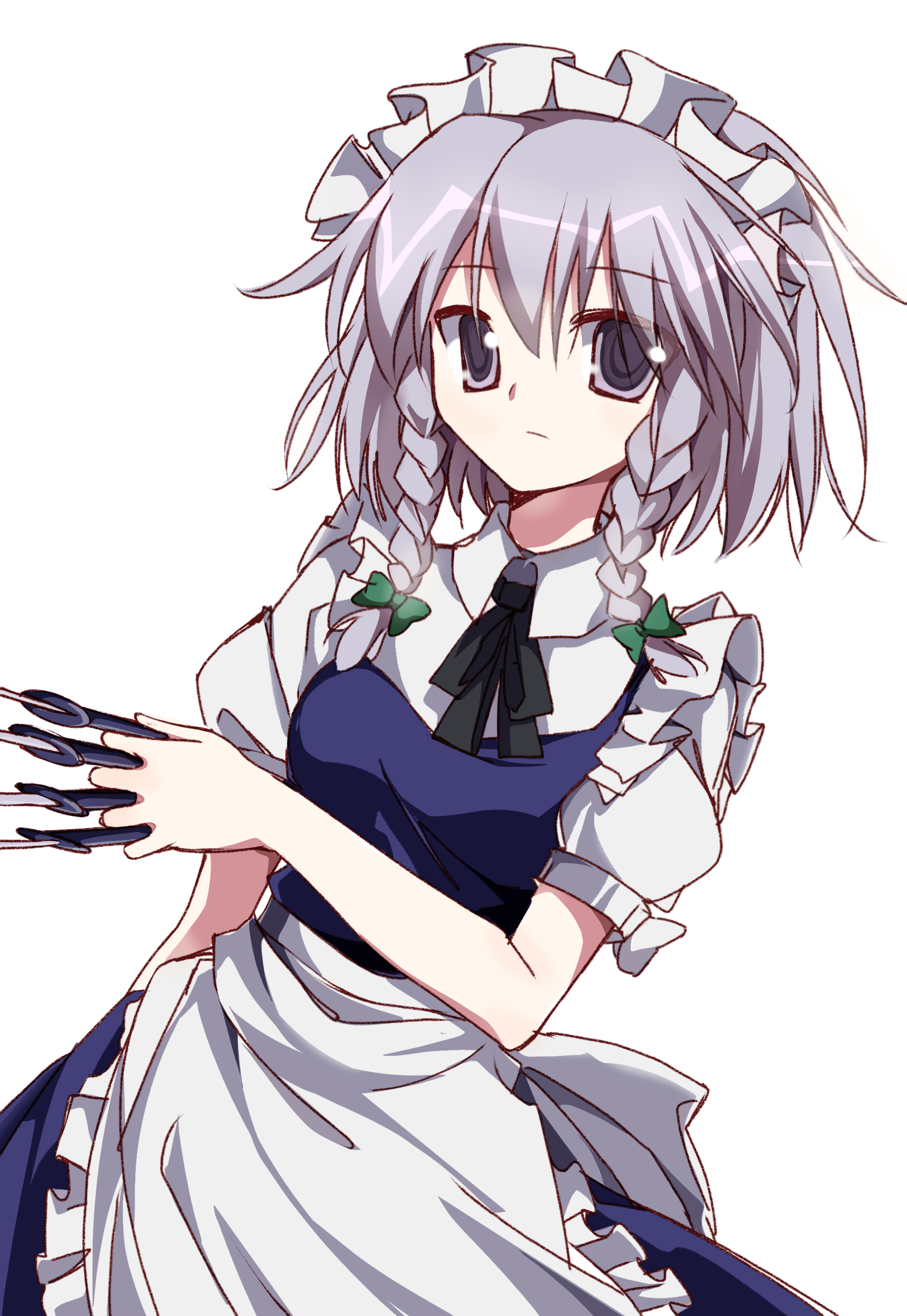 &{ID:12025300 CreatedAt:Sat May 31 01:30:43 -0500 2025 Score:1 Width:1907 Height:2765 MD5:bcd447086da1ff0852888f85f1475acf Directory:bc/d4 Image:bcd447086da1ff0852888f85f1475acf.png Rating:general Source:https://liuxiangyun20993.lofter.com/post/785e1d55_2be88e9e7 Change:1748673044 Owner:danbooru CreatorID:6498 ParentID:0 Sample:1 PreviewHeight:350 PreviewWidth:241 Tags:1girl 2000s_(style) absurdres apron back_bow between_fingers black_bow black_bowtie blue_skirt blue_vest bow bowtie braid chinese_commentary closed_mouth collared_shirt commentary_request cowboy_shot dot_nose expressionless faux_retro_artstyle frilled_apron frills green_bow grey_eyes grey_hair hair_between_eyes hair_bow highres holding holding_knife izayoi_sakuya knife knives_between_fingers light_frown liuxiangyun20993 long_hair maid maid_headdress puffy_short_sleeves puffy_sleeves shirt short_sleeves side_braids simple_background skirt skirt_set solo standing touhou tsurime twin_braids vest white_apron white_background white_bow white_shirt Title: HasNotes:false HasComments:false FileURL:https://img2.gelbooru.com/images/bc/d4/bcd447086da1ff0852888f85f1475acf.png PreviewURL:https://gelbooru.com/thumbnails/bc/d4/thumbnail_bcd447086da1ff0852888f85f1475acf.jpg SampleURL:https://img2.gelbooru.com/samples/bc/d4/sample_bcd447086da1ff0852888f85f1475acf.jpg SampleHeight:1232 SampleWidth:850 Status:active PostLocked:0 HasChildren:false IsVideo:false DisplayDate:31.05.2025 01:30}
