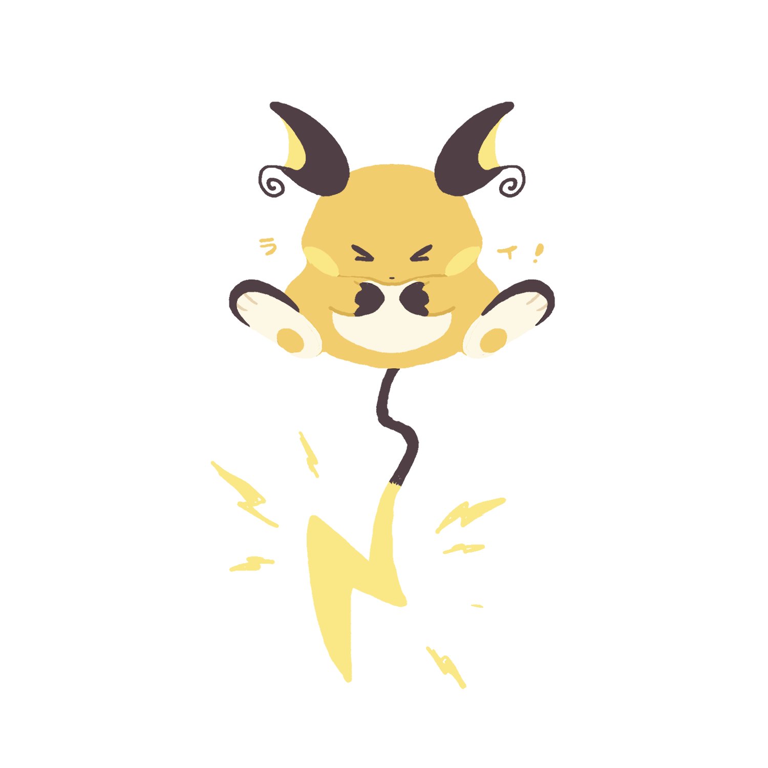 >_< closed_eyes commentary_request daifuku_(pokefuka_art) full_body gen_1_pokemon highres lightning_bolt_symbol nintendo no_humans pokemon pokemon_(creature) pokemon_focus raichu simple_background solo white_background