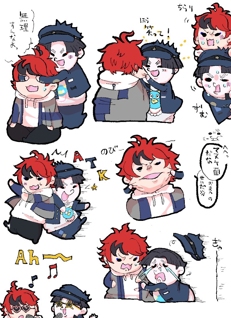 ahoge black_hair blush chibi chibi_only crying gloves heart heart-shaped_eyewear heart-shaped_glasses heart-shaped_sunglasses hood hoodie japanese_text maruko_gaku messy_hair multicolored_gloves musical_note open_mouth red_hair simple_background star-shaped_eyewear star-shaped_glasses star_(symbol) sumino_takumi tears the_hundred_line_-last_defense_academy- translation_request white_background