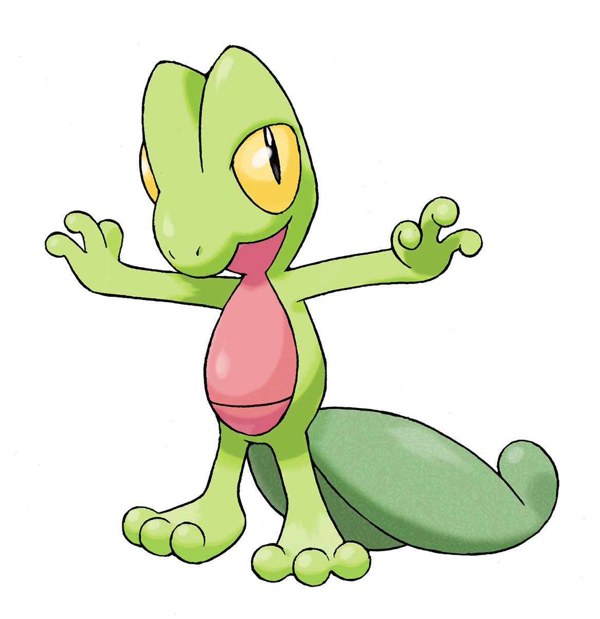 animal_focus closed_mouth full_body gen_3_pokemon highres nintendo no_humans nostrils official_art outstretched_arms pokemon pokemon_(creature) pokemon_focus pokemon_ruby/sapphire/emerald solo spread_arms standing sugimori_ken third-party_source transparent_background treecko yellow_eyes