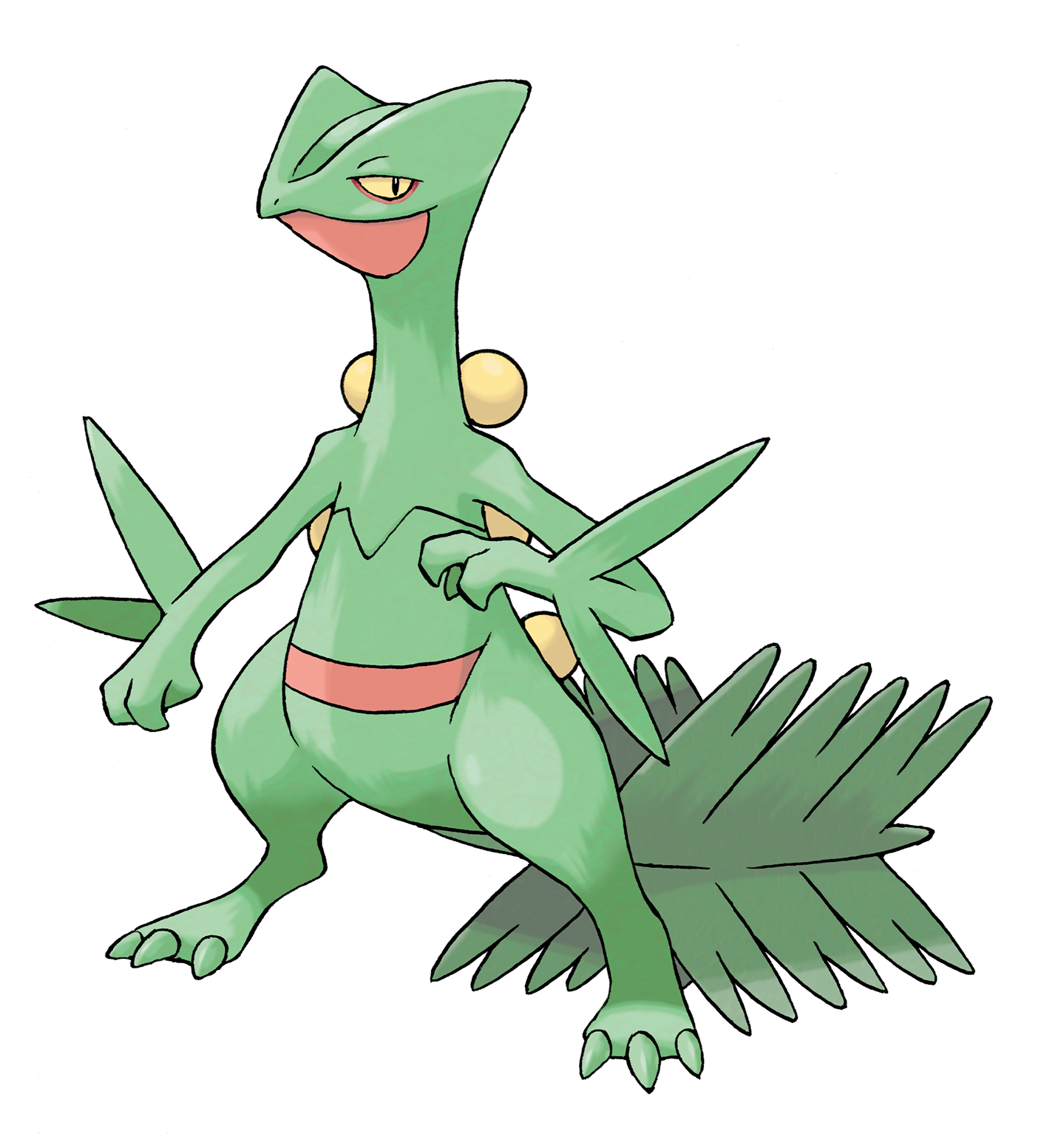closed_mouth full_body gen_3_pokemon highres nintendo official_art pokemon pokemon_(creature) pokemon_focus pokemon_ruby/sapphire/emerald sceptile smile solo standing sugimori_ken third-party_source transparent_background