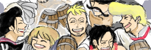 6+boys ^_^ beard_stubble black_hair blonde_hair blunt_bangs brown_hair closed_eyes commentary_request cup dreadlocks facial_hair freckles haruta_(one_piece) holding holding_cup izou_(one_piece) jewelry jozu_(one_piece) kawaji_(tegaki.pipa) lowres marco_(one_piece) multiple_boys mustache necklace one_piece open_mouth pearl_necklace portgas_d._ace rakuyou_(one_piece) red_lips scar scar_on_face stubble thatch_(one_piece) vista_(one_piece)