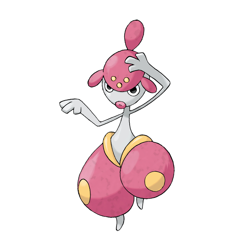 full_body gen_3_pokemon medicham nintendo official_art pink_lips pokemon pokemon_(creature) pokemon_focus pokemon_ruby/sapphire/emerald simple_background solo standing standing_on_one_leg sugimori_ken third-party_source white_background