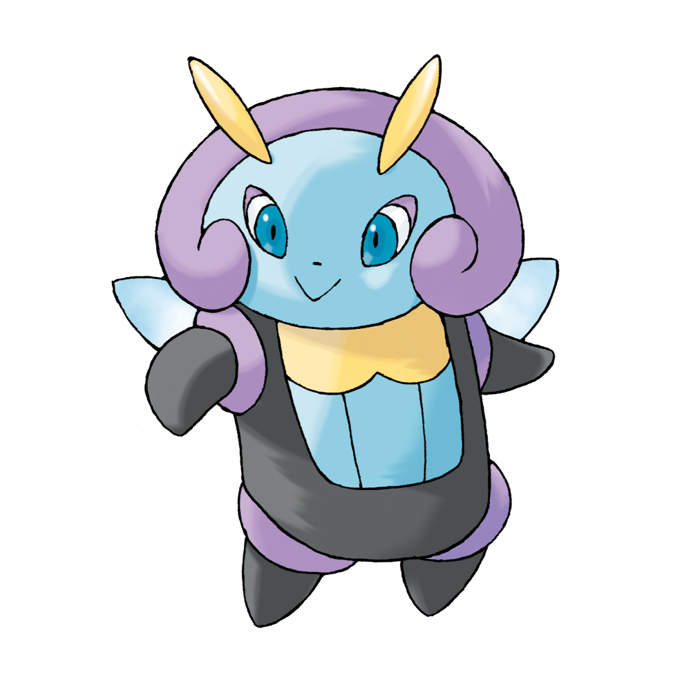 :> antennae blue_eyes closed_mouth dot_nose full_body gen_3_pokemon illumise insect_wings nintendo no_humans official_art pokemon pokemon_(creature) pokemon_focus pokemon_ruby/sapphire/emerald simple_background smile solo sugimori_ken third-party_source white_background wings