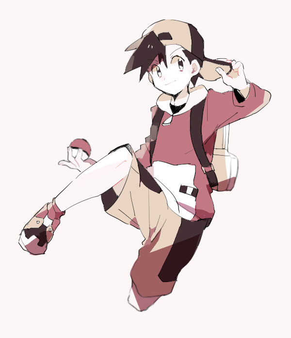 backpack backwards_hat bag baseball_cap ethan_(pokemon) hat holding holding_poke_ball jacket nintendo poke_ball poke_ball_(basic) pokemon pokemon_gold/silver/crystal red_jacket shorts smcms-m white_background yellow_shorts