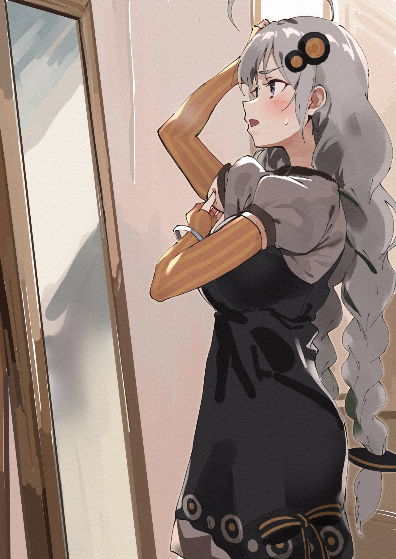&{ID:12058436 CreatedAt:Thu Jun 05 18:00:36 -0500 2025 Score:3 Width:1279 Height:1806 MD5:e600f5673ad0b7c6485fa00ac9066d6e Directory:e6/00 Image:e600f5673ad0b7c6485fa00ac9066d6e.jpg Rating:general Source:https://www.pixiv.net/artworks/131228517 Change:1749164436 Owner:danbooru CreatorID:6498 ParentID:0 Sample:1 PreviewHeight:350 PreviewWidth:247 Tags:1girl ahoge arm_pinching black_dress blush braid breasts brown_gloves commentary_request dress elbow_gloves fingerless_gloves from_side full-length_mirror gloves grey_eyes grey_hair grey_shirt hair_between_eyes hair_ornament highres indoors kizuna_akari lamb_(hitsujiniku) long_hair low_twintails medium_breasts mirror open_mouth puffy_short_sleeves puffy_sleeves shirt short_sleeves sleeveless sleeveless_dress small_sweatdrop solo standing striped_clothes striped_gloves sweat twin_braids twintails very_long_hair voiceroid Title: HasNotes:false HasComments:false FileURL:https://img2.gelbooru.com/images/e6/00/e600f5673ad0b7c6485fa00ac9066d6e.jpg PreviewURL:https://gelbooru.com/thumbnails/e6/00/thumbnail_e600f5673ad0b7c6485fa00ac9066d6e.jpg SampleURL:https://img2.gelbooru.com/samples/e6/00/sample_e600f5673ad0b7c6485fa00ac9066d6e.jpg SampleHeight:1200 SampleWidth:850 Status:active PostLocked:0 HasChildren:false IsVideo:false DisplayDate:05.06.2025 18:00}