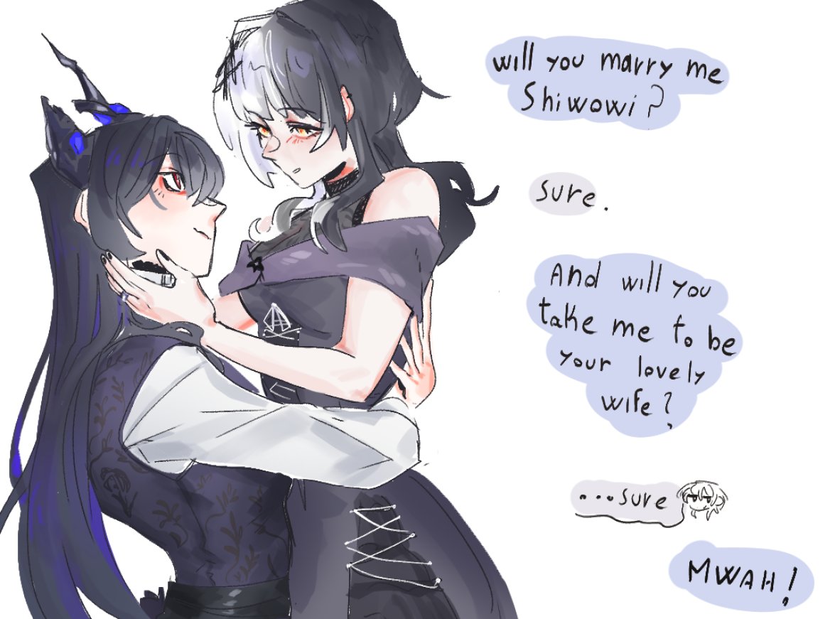 &{ID:12064698 CreatedAt:Fri Jun 06 20:31:30 -0500 2025 Score:7 Width:1182 Height:871 MD5:f1bea358bd838a03a91c193e4628caac Directory:f1/be Image:f1bea358bd838a03a91c193e4628caac.jpg Rating:general Source:https://twitter.com/TibsSketches/status/1930952114668286408 Change:1749259890 Owner:danbooru CreatorID:6498 ParentID:0 Sample:1 PreviewHeight:257 PreviewWidth:350 Tags:2girls black_dress black_hair black_vest closed_mouth commentary dress english_commentary english_text hands_on_another's_waist hololive hololive_english horns hug jewelry long_hair long_sleeves marriage_proposal multicolored_hair multiple_girls nerissa_ravencroft parted_lips purple_hair ring shiori_novella shirt simple_background smile speech_bubble tibetanyakart two-tone_hair vest virtual_youtuber wedding_ring white_background white_hair white_shirt yellow_eyes yuri Title: HasNotes:false HasComments:false FileURL:https://img2.gelbooru.com/images/f1/be/f1bea358bd838a03a91c193e4628caac.jpg PreviewURL:https://gelbooru.com/thumbnails/f1/be/thumbnail_f1bea358bd838a03a91c193e4628caac.jpg SampleURL:https://img2.gelbooru.com/samples/f1/be/sample_f1bea358bd838a03a91c193e4628caac.jpg SampleHeight:626 SampleWidth:850 Status:active PostLocked:0 HasChildren:false IsVideo:false DisplayDate:06.06.2025 20:31}