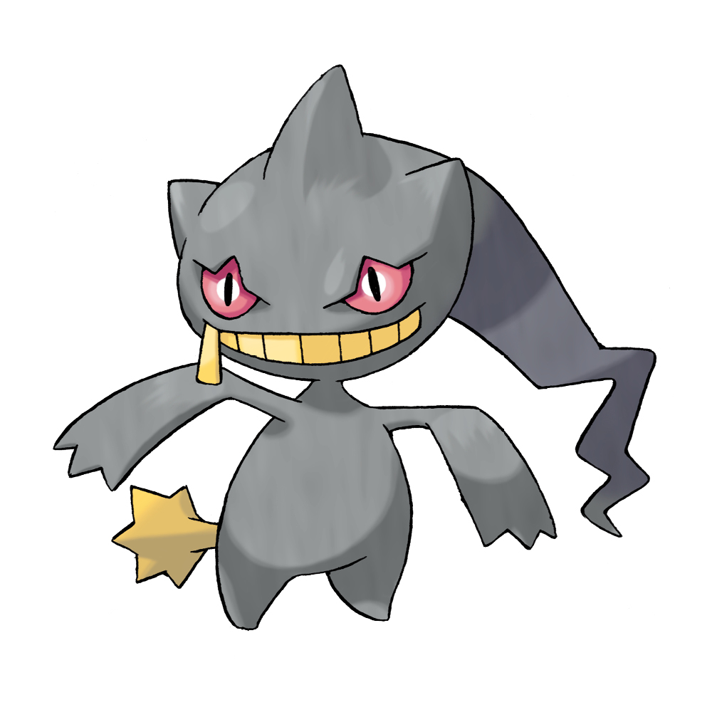banette full_body gen_3_pokemon nintendo official_art pokemon pokemon_(creature) pokemon_focus pokemon_ruby/sapphire/emerald simple_background smile solo standing sugimori_ken third-party_source white_background zipper