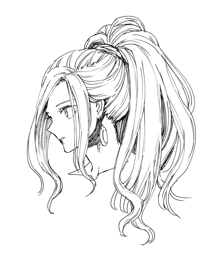 1girl akitaka_(s_asai) bare_shoulders chrono_trigger collarbone earrings greyscale jewelry long_hair monochrome ponytail schala_zeal simple_background solo white_background