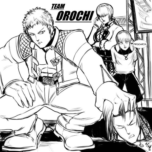 1girl 3boys brown_hair chris_(kof) head_grab multiple_boys nanakase_yashiro red_hair shermie_(kof) snk the_king_of_fighters the_king_of_fighters_xv white_hair yagami_iori