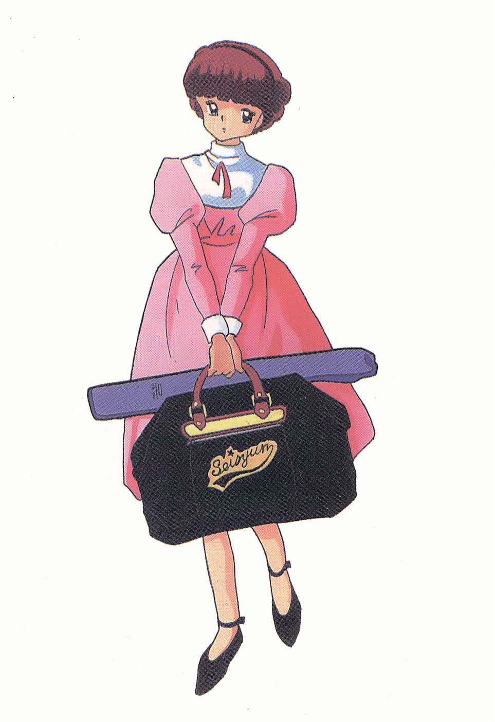 1girl artist_request dress full_body hairband highres konjo_mariko pink_dress ranma_1/2 solo source_request standing tagme white_background