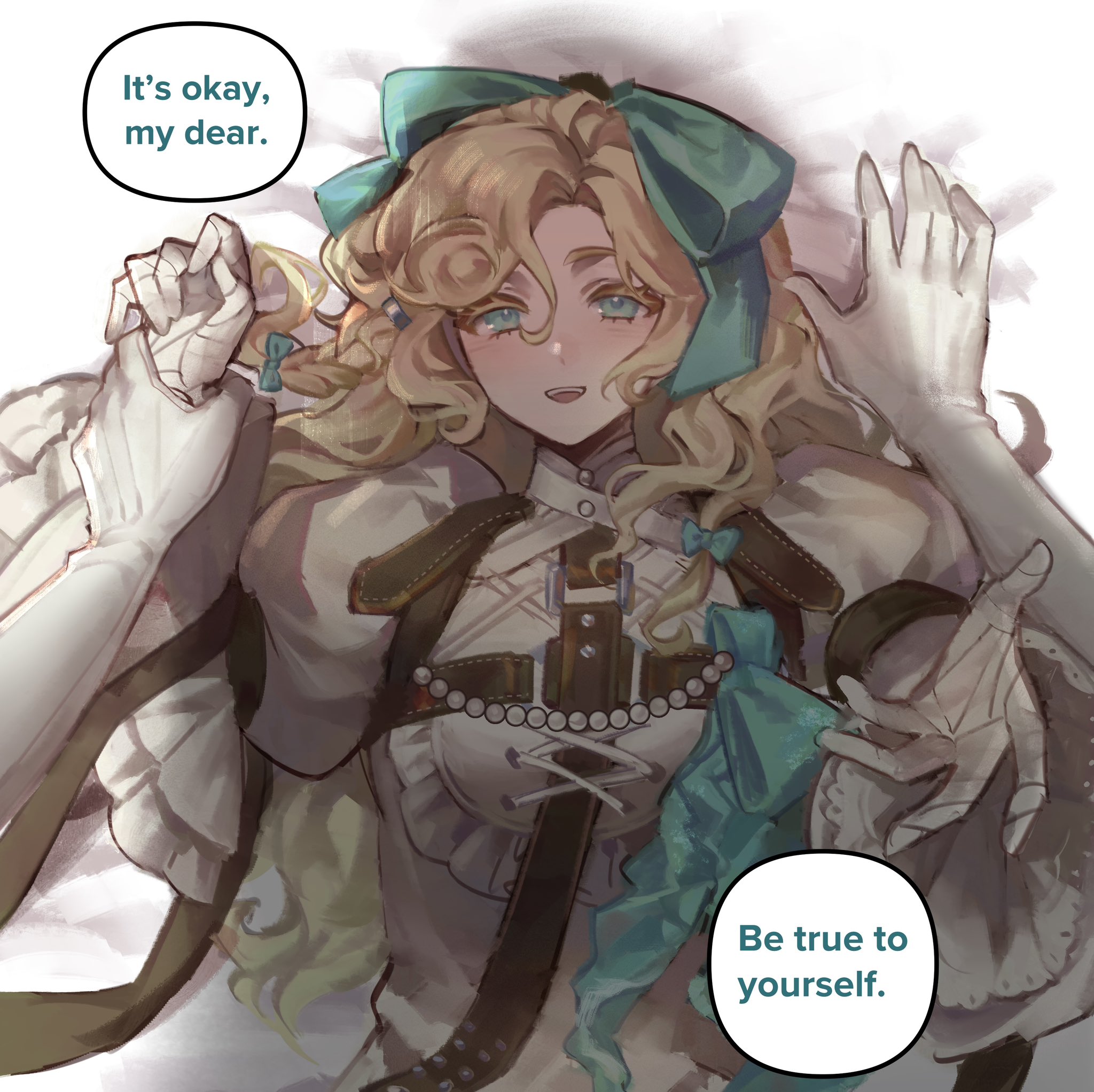 &{ID:12099484 CreatedAt:Thu Jun 12 21:16:38 -0500 2025 Score:8 Width:2048 Height:2044 MD5:a347e629aa36ce69a8a3838521bb10b8 Directory:a3/47 Image:a347e629aa36ce69a8a3838521bb10b8.jpg Rating:general Source:https://twitter.com/SiriInwZA/status/1885981842844905973 Change:1774798049 Owner:danbooru CreatorID:6498 ParentID:0 Sample:1 PreviewHeight:349 PreviewWidth:350 Tags:2girls :d aqua_bow aqua_eyes arm_belt bandaged_hand bandages bed_sheet belt blonde_hair bow brown_belt curly_hair dress english_text gloves hair_bow hand_up highres holding_another's_wrist juliet_sleeves long_hair long_sleeves looking_at_viewer lorelei_(reverse:1999) lying multiple_girls on_bed open_mouth outstretched_hand pov pov_shadow puffy_sleeves reverse:1999 semmelweis_(reverse:1999) shadow siriinwza smile solo_focus speech_bubble upper_body very_long_hair white_dress white_gloves yukadon Title: HasNotes:false HasComments:false FileURL:https://img2.gelbooru.com/images/a3/47/a347e629aa36ce69a8a3838521bb10b8.jpg PreviewURL:https://gelbooru.com/thumbnails/a3/47/thumbnail_a347e629aa36ce69a8a3838521bb10b8.jpg SampleURL:https://img2.gelbooru.com/samples/a3/47/sample_a347e629aa36ce69a8a3838521bb10b8.jpg SampleHeight:848 SampleWidth:850 Status:active PostLocked:0 HasChildren:false IsVideo:false DisplayDate:12.06.2025 21:16}