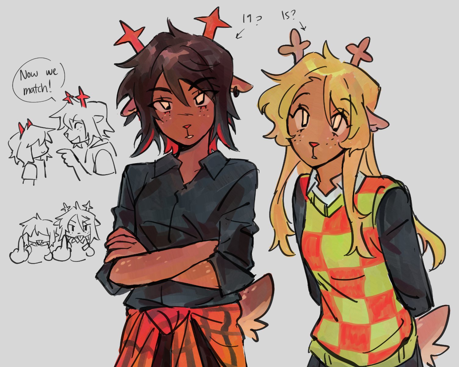 &{ID:12110254 CreatedAt:Sat Jun 14 16:01:05 -0500 2025 Score:11 Width:1504 Height:1201 MD5:0844b4be0bb47cfa0c91a938ff08d670 Directory:08/44 Image:0844b4be0bb47cfa0c91a938ff08d670.jpg Rating:general Source:https://twitter.com/GOOMYLOID/status/1933253759133790339 Change:1756011884 Owner:danbooru CreatorID:6498 ParentID:0 Sample:1 PreviewHeight:279 PreviewWidth:350 Tags:1other 2girls animal_ears antlers arms_behind_back black_shirt blonde_hair brown_hair character_age checkered_clothes checkered_vest clothes_around_waist collared_shirt commentary crossed_arms december_holiday deer_antlers deer_ears deer_girl deer_tail deltarune design_speculation earrings english_commentary freckles furry furry_female goomyloid highres horns jewelry kris_(deltarune) long_hair middle_finger multicolored_hair multiple_girls noelle_holiday parted_lips plaid_clothes plaid_shirt red_hair red_horns red_shirt shirt shirt_around_waist short_hair siblings single_earring sisters streaked_hair tail tongue tongue_out two-tone_hair utdr_(toby_fox) vest Title: HasNotes:false HasComments:false FileURL:https://img2.gelbooru.com/images/08/44/0844b4be0bb47cfa0c91a938ff08d670.jpg PreviewURL:https://gelbooru.com/thumbnails/08/44/thumbnail_0844b4be0bb47cfa0c91a938ff08d670.jpg SampleURL:https://img2.gelbooru.com/samples/08/44/sample_0844b4be0bb47cfa0c91a938ff08d670.jpg SampleHeight:679 SampleWidth:850 Status:active PostLocked:0 HasChildren:false IsVideo:false DisplayDate:14.06.2025 16:01}
