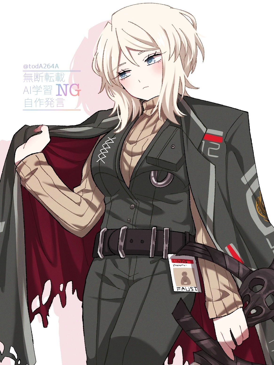 &{ID:12119664 CreatedAt:Mon Jun 16 04:47:42 -0500 2025 Score:1 Width:1165 Height:1552 MD5:dd4f6c314265bef88d0cb556d1133779 Directory:dd/4f Image:dd4f6c314265bef88d0cb556d1133779.jpg Rating:general Source:https://twitter.com/toda264a/status/1932757201657254062 Change:1750067263 Owner:danbooru CreatorID:6498 ParentID:0 Sample:1 PreviewHeight:350 PreviewWidth:262 Tags:1girl belt black_belt black_coat black_pants black_vest blue_eyes breasts closed_mouth coat coat_on_shoulders collared_shirt faust_(project_moon) highres holding holding_sword holding_weapon limbus_company long_sleeves looking_at_viewer pants project_moon rug_(yurari606) shirt short_hair simple_background solo standing sweater sword upper_body vest weapon white_background white_hair yellow_sweater Title: HasNotes:false HasComments:false FileURL:https://img2.gelbooru.com/images/dd/4f/dd4f6c314265bef88d0cb556d1133779.jpg PreviewURL:https://gelbooru.com/thumbnails/dd/4f/thumbnail_dd4f6c314265bef88d0cb556d1133779.jpg SampleURL:https://img2.gelbooru.com/samples/dd/4f/sample_dd4f6c314265bef88d0cb556d1133779.jpg SampleHeight:1132 SampleWidth:850 Status:active PostLocked:0 HasChildren:false IsVideo:false DisplayDate:16.06.2025 04:47}