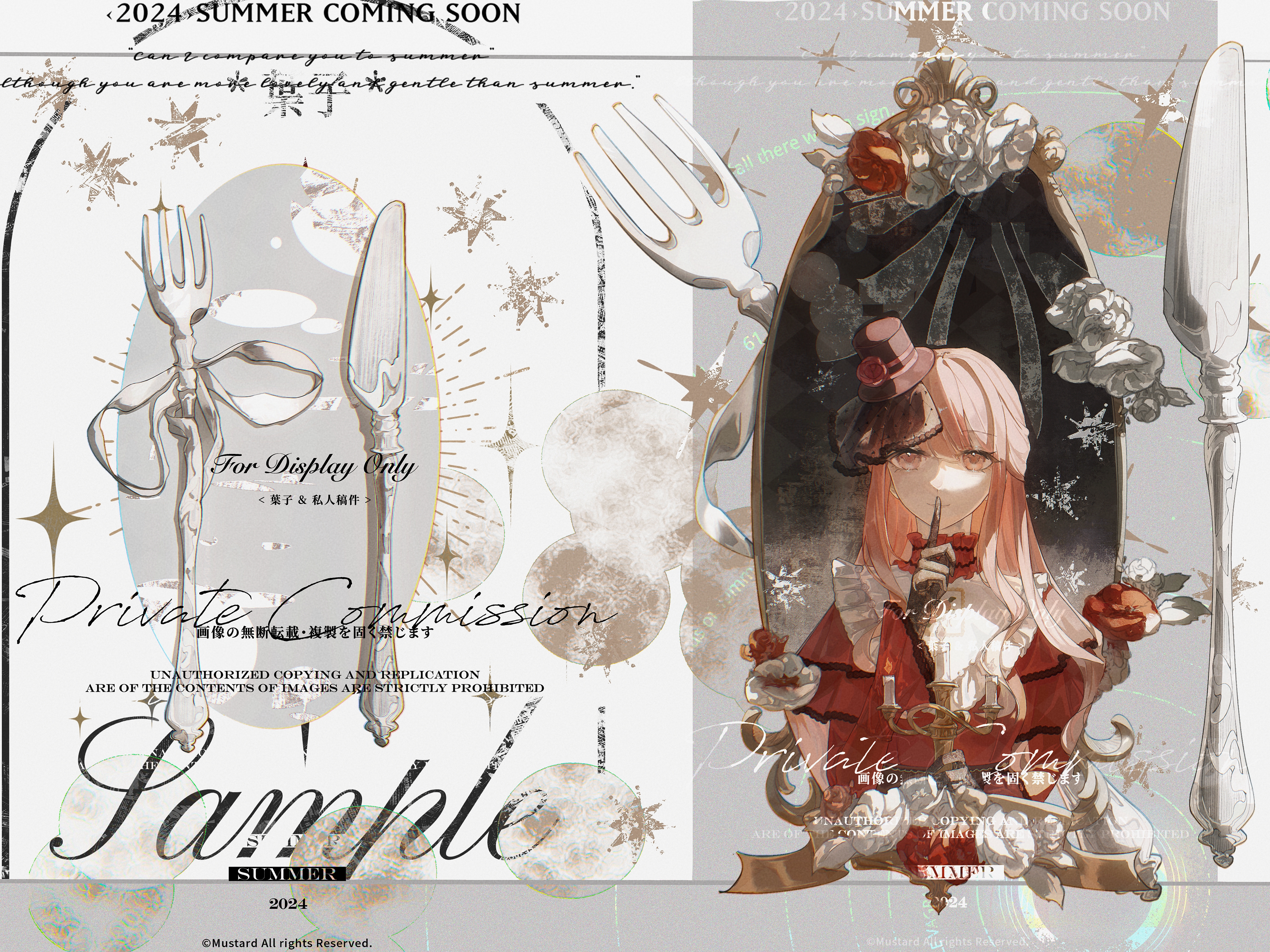 1girl absurdres artist_request black_gloves black_hat black_vest blunt_bangs brown_eyes choker closed_mouth commission dress flower fork formal_clothes frilled_choker frilled_sleeves frills gloves gown grey_background happy hat hat_flower highres knife layered_sleeves long_hair long_sleeves looking_at_viewer mini_hat mini_top_hat mirror nikki_(formal)_(shining_nikki) nikki_(nikki) nikki_(series) pink_hair red_choker red_dress red_flower red_rose rose sample_watermark second-party_source shining_nikki shirt shirt_under_dress short_over_long_sleeves short_sleeves sidelocks smile solo star_(symbol) too_many_watermarks top_hat two-tone_background upper_body vest watermark wavy_hair white_background white_flower white_rose white_shirt