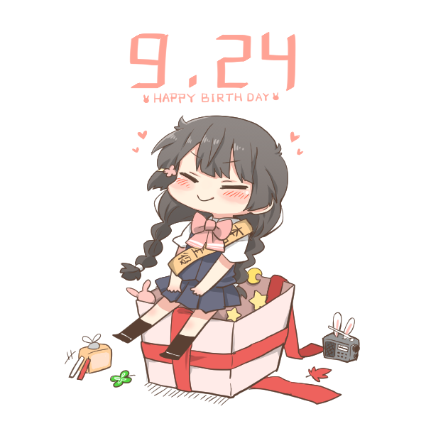 +++ 1girl animal_ears black_shoes black_socks blue_skirt blue_vest blush_stickers bow braid chibi closed_eyes closed_mouth clover dated facing_viewer flower four-leaf_clover gift hair_flower hair_ornament hairclip happy_birthday heart long_hair low_twintails nijisanji pink_bow pink_flower pleated_skirt rabbit_ears radio rebecca_(keinelove) sash school_uniform shirt shoes short_sleeves shoulder_sash simple_background sitting skirt smile socks solo television translation_request tsukino_mito tsukino_mito_(summer_uniform) twin_braids twintails very_long_hair vest virtual_youtuber white_background white_shirt